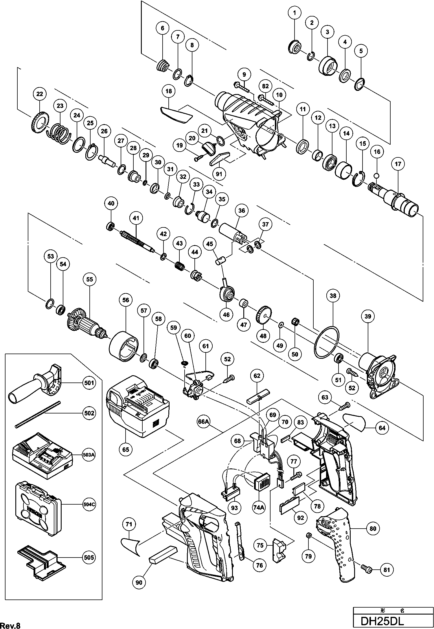 Spare parts list of model Hikoki DH25DL