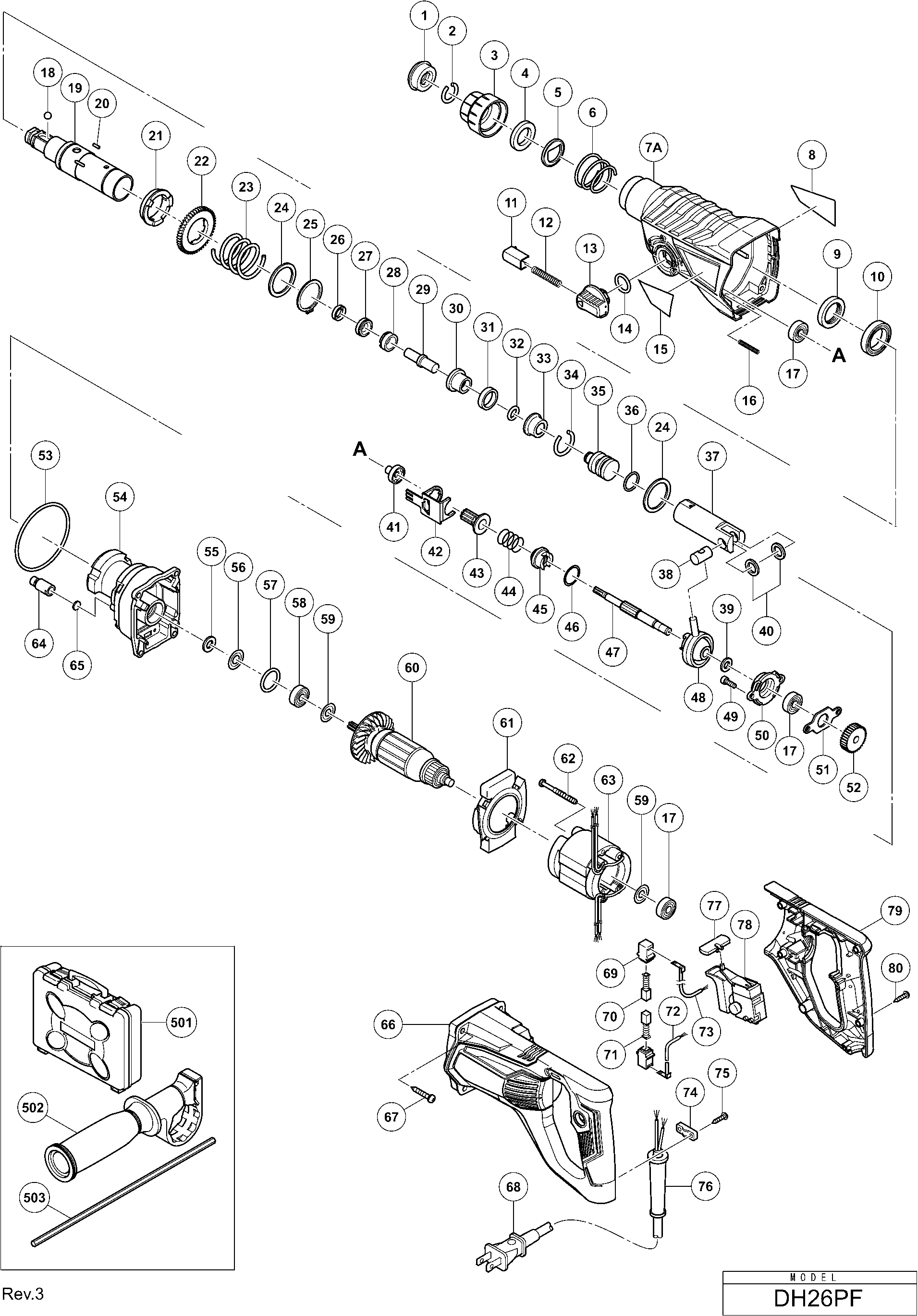Spare parts list of model Hikoki DH26PF