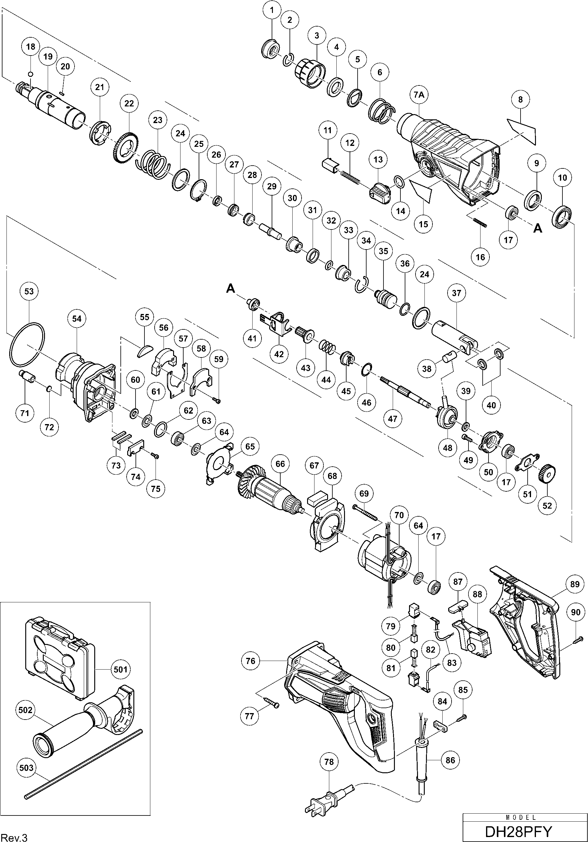 Spare parts list of model Hikoki DH28PFY