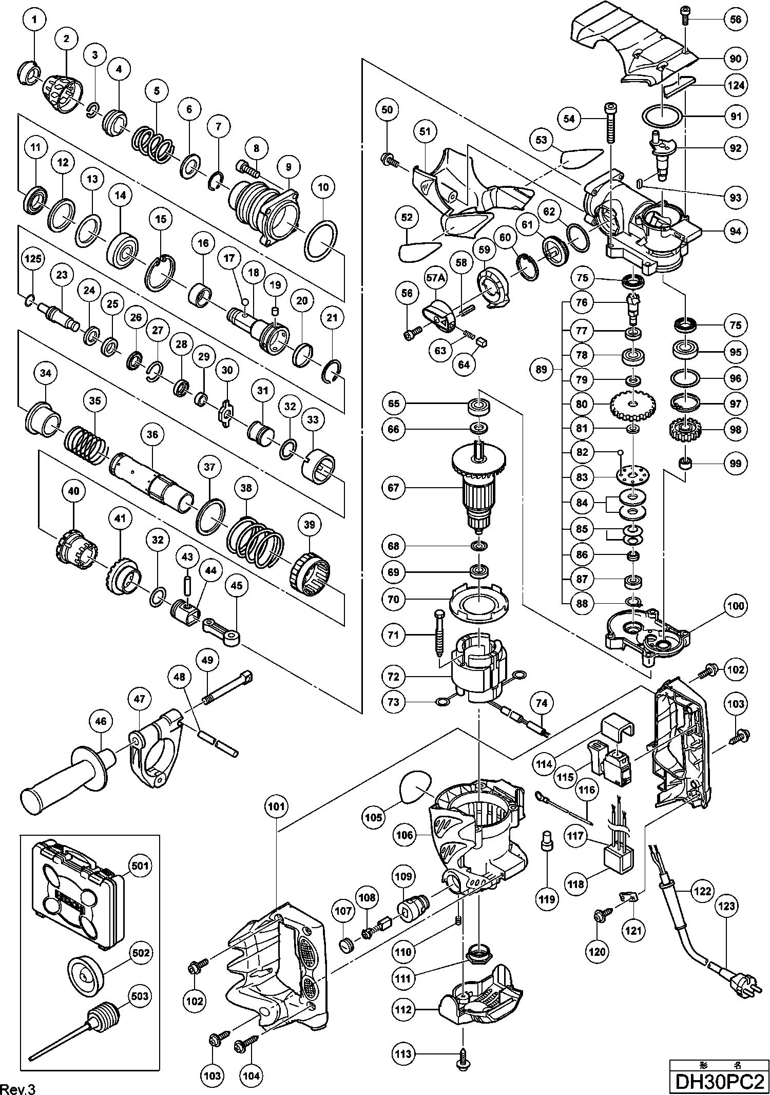 Spare parts list of model Hikoki DH30PC2