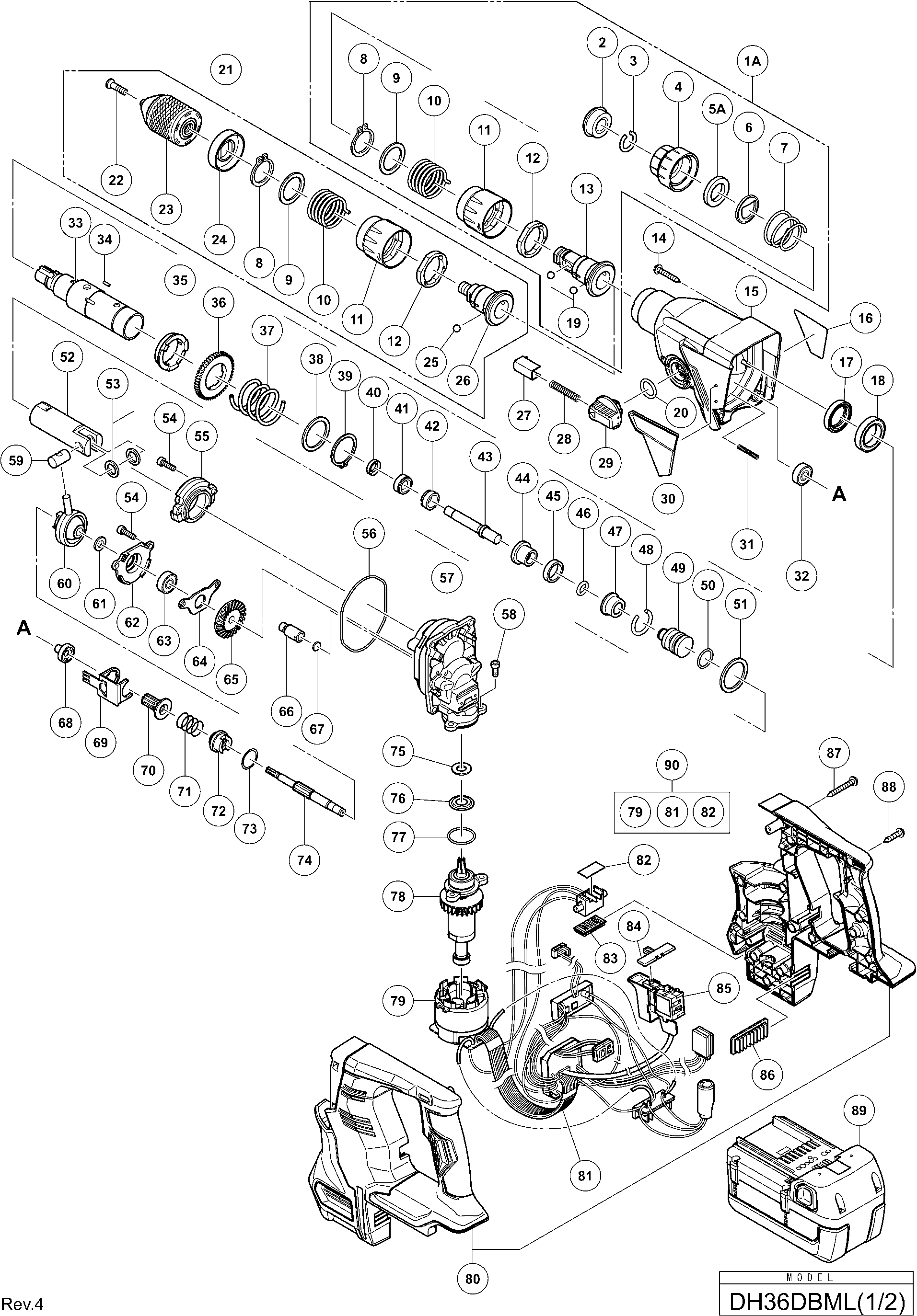 Here you will find all available parts and drawings of the 'Hikoki DH36DBML'. From here you can order all desired parts directly. Many parts must be ordered from the manufacturer, depending on the brand, this takes one to four weeks. All the information we have is on our website, we cannot advise you on what you need, for that you will need to return the machine for repair. Please note the following when ordering:
