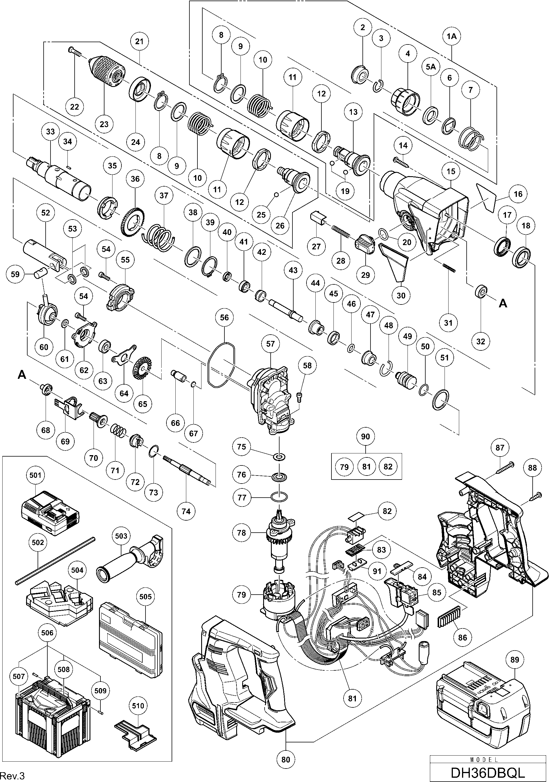 Here you will find all available parts and drawings of the 'Hikoki DH36DBQL'. From here you can order all desired parts directly. Many parts must be ordered from the manufacturer, depending on the brand, this takes one to four weeks. All the information we have is on our website, we cannot advise you on what you need, for that you will need to return the machine for repair. Please note the following when ordering: