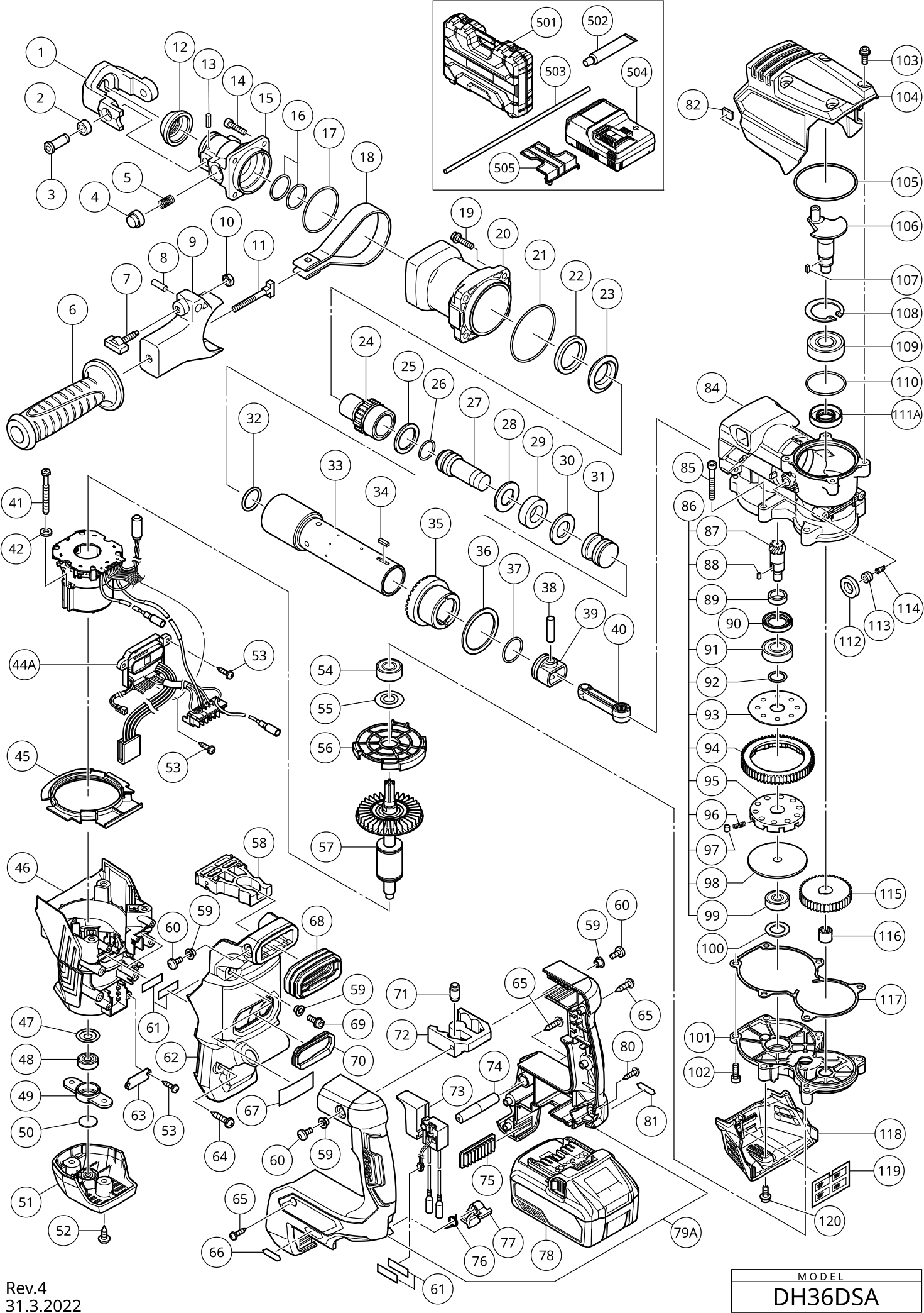 Spare parts list of model Hikoki DH36DSA