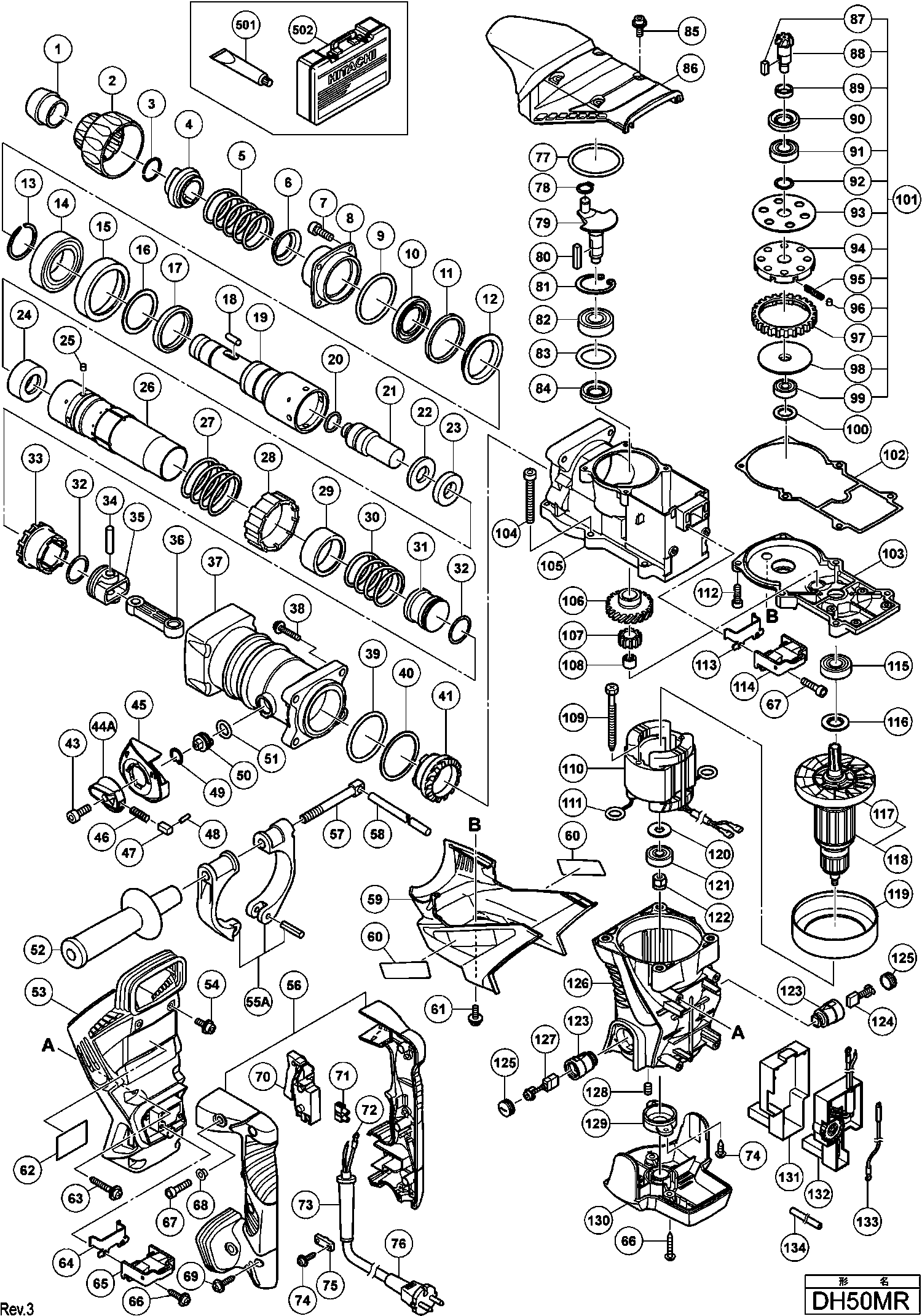 Spare parts list of model Hikoki DH50MR