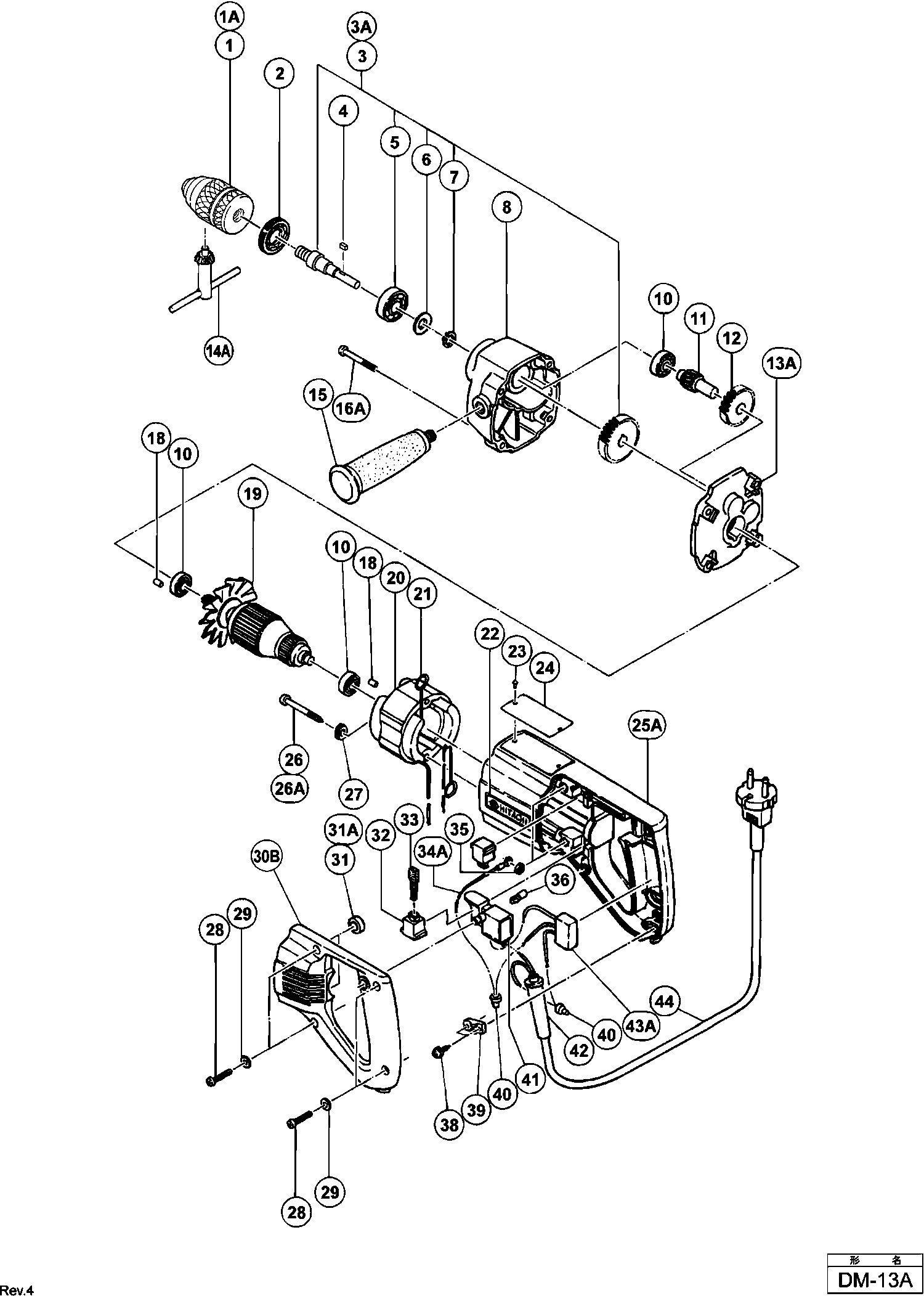 Spare parts list of model Hikoki DM-13A