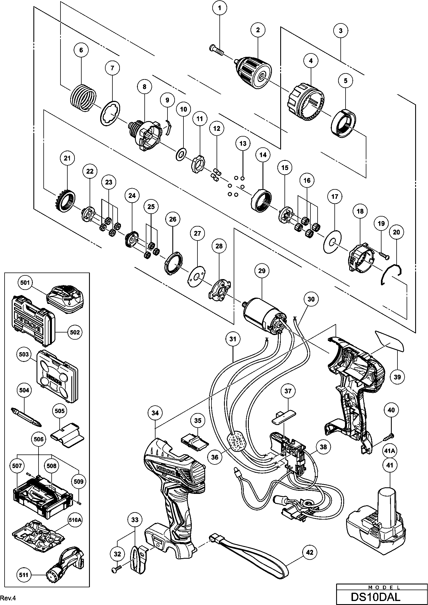 Here you will find all available parts and drawings of the 'Hikoki DS10DAL'. From here you can order all desired parts directly. Many parts must be ordered from the manufacturer, depending on the brand, this takes one to four weeks. All the information we have is on our website, we cannot advise you on what you need, for that you will need to return the machine for repair. Please note the following when ordering: