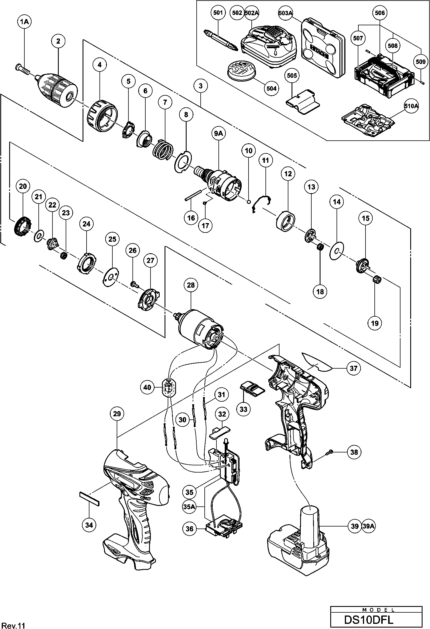 Spare parts list of model Hikoki DS10DFL