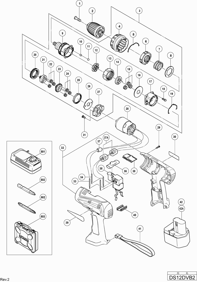 Spare parts list of model Hikoki DS12DBV2