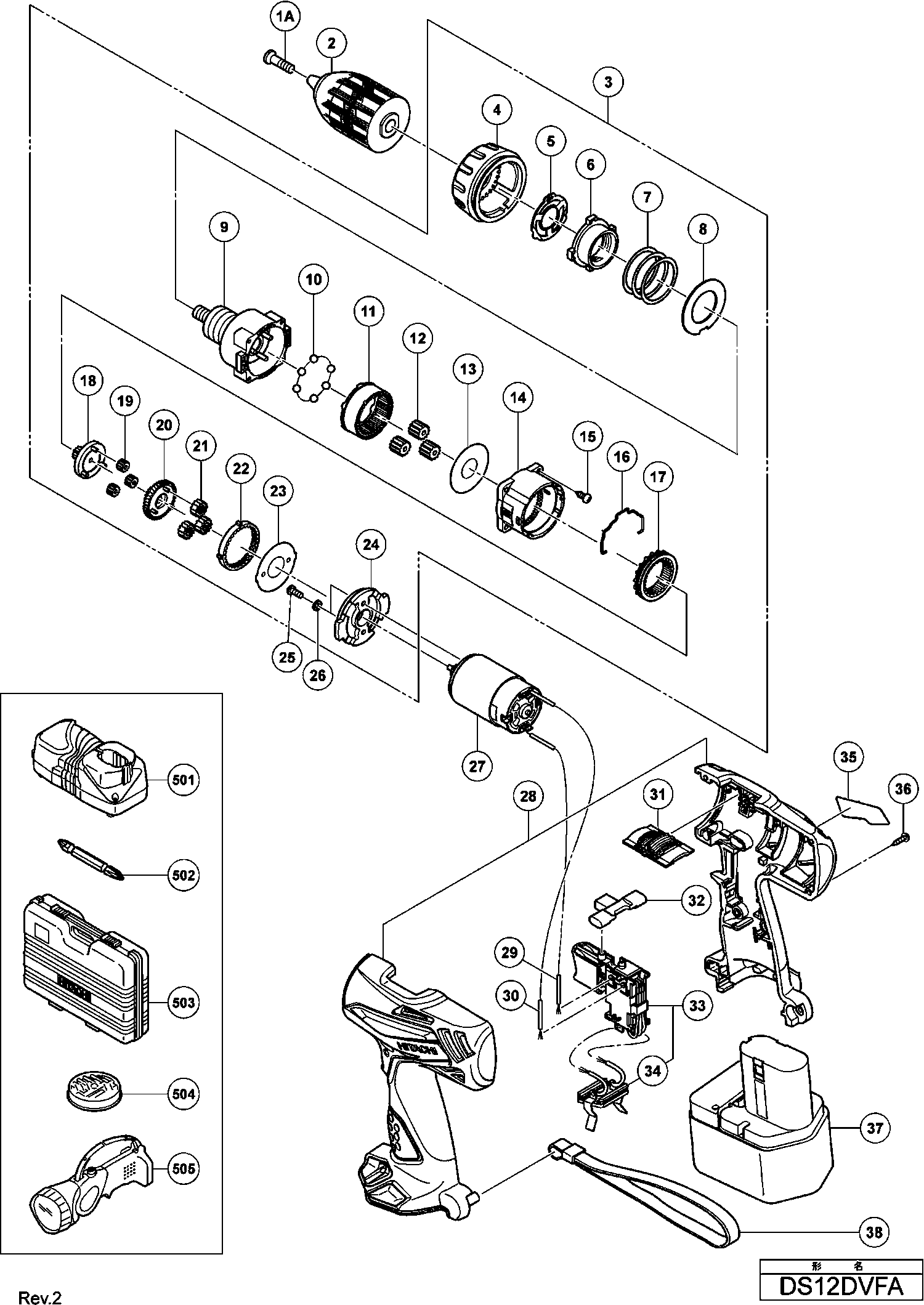 Spare parts list of model Hikoki DS12DVFA