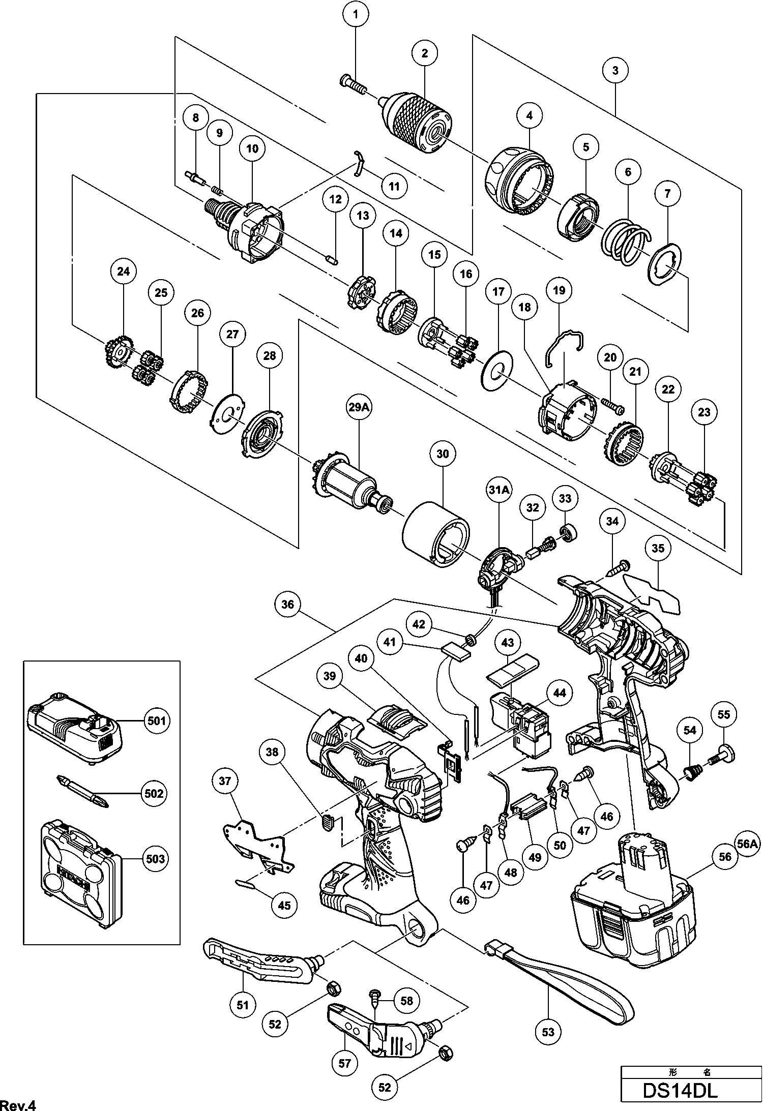 Spare parts list of model Hikoki DS14DL