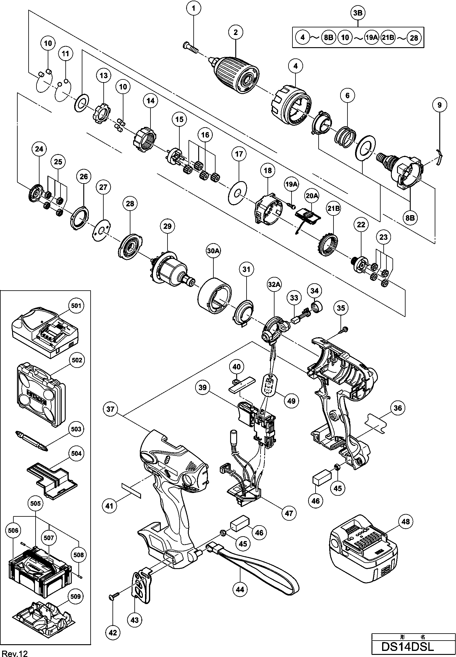 Spare parts list of model Hikoki DS14DSL