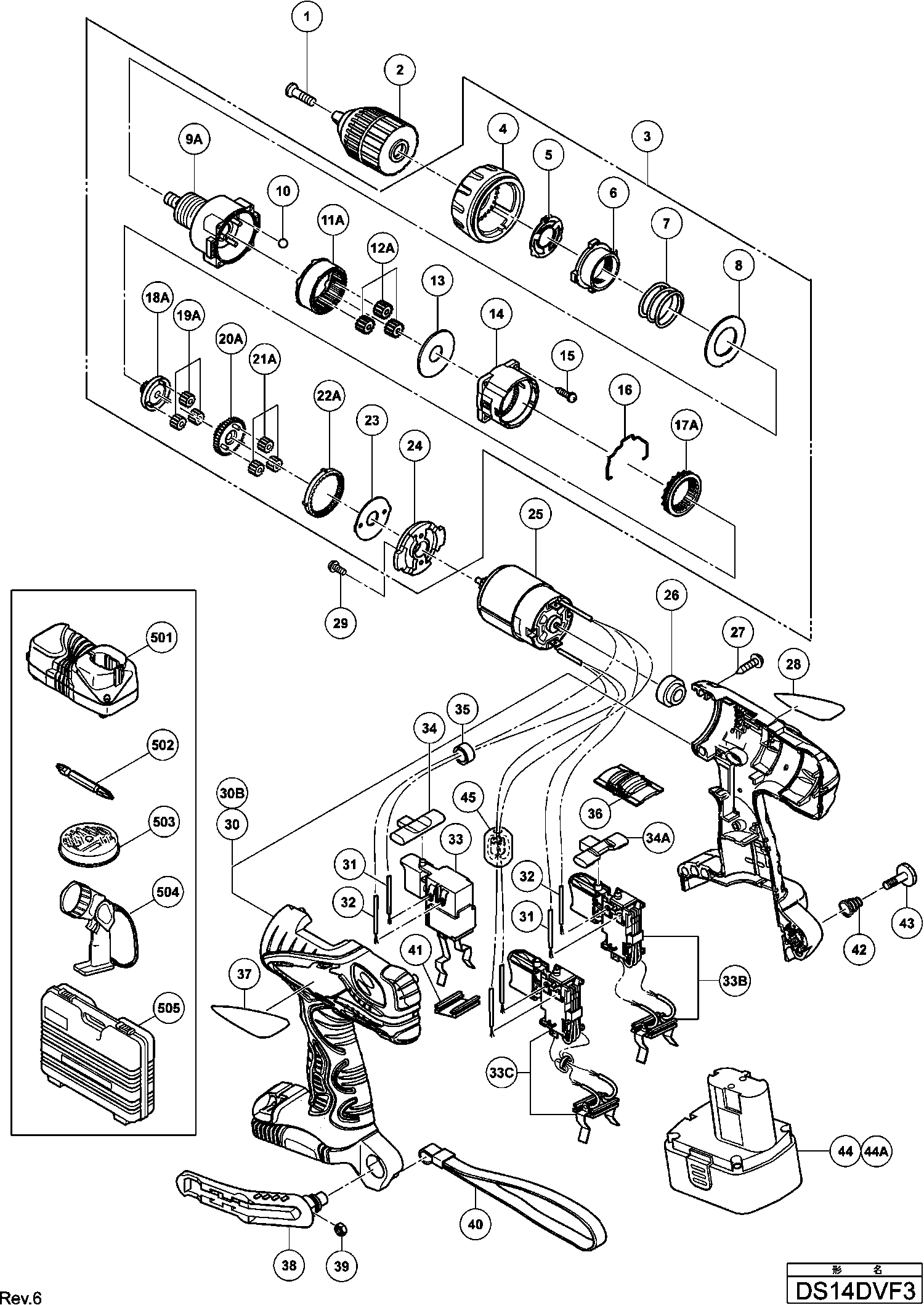 Spare parts list of model Hikoki DS14DVF3