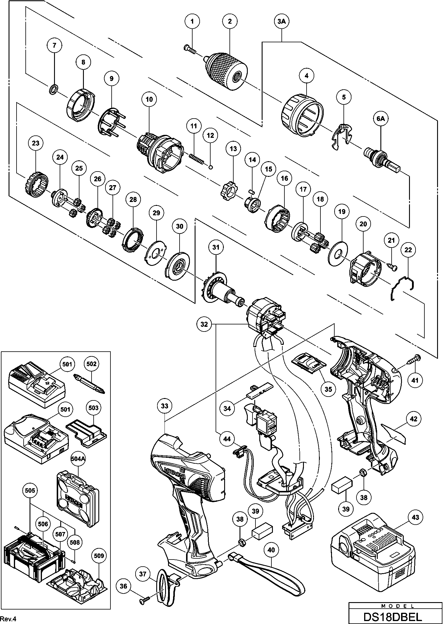 Here you will find all available parts and drawings of the 'Hikoki DS18DBEL'. From here you can order all desired parts directly. Many parts must be ordered from the manufacturer, depending on the brand, this takes one to four weeks. All the information we have is on our website, we cannot advise you on what you need, for that you will need to return the machine for repair. Please note the following when ordering: