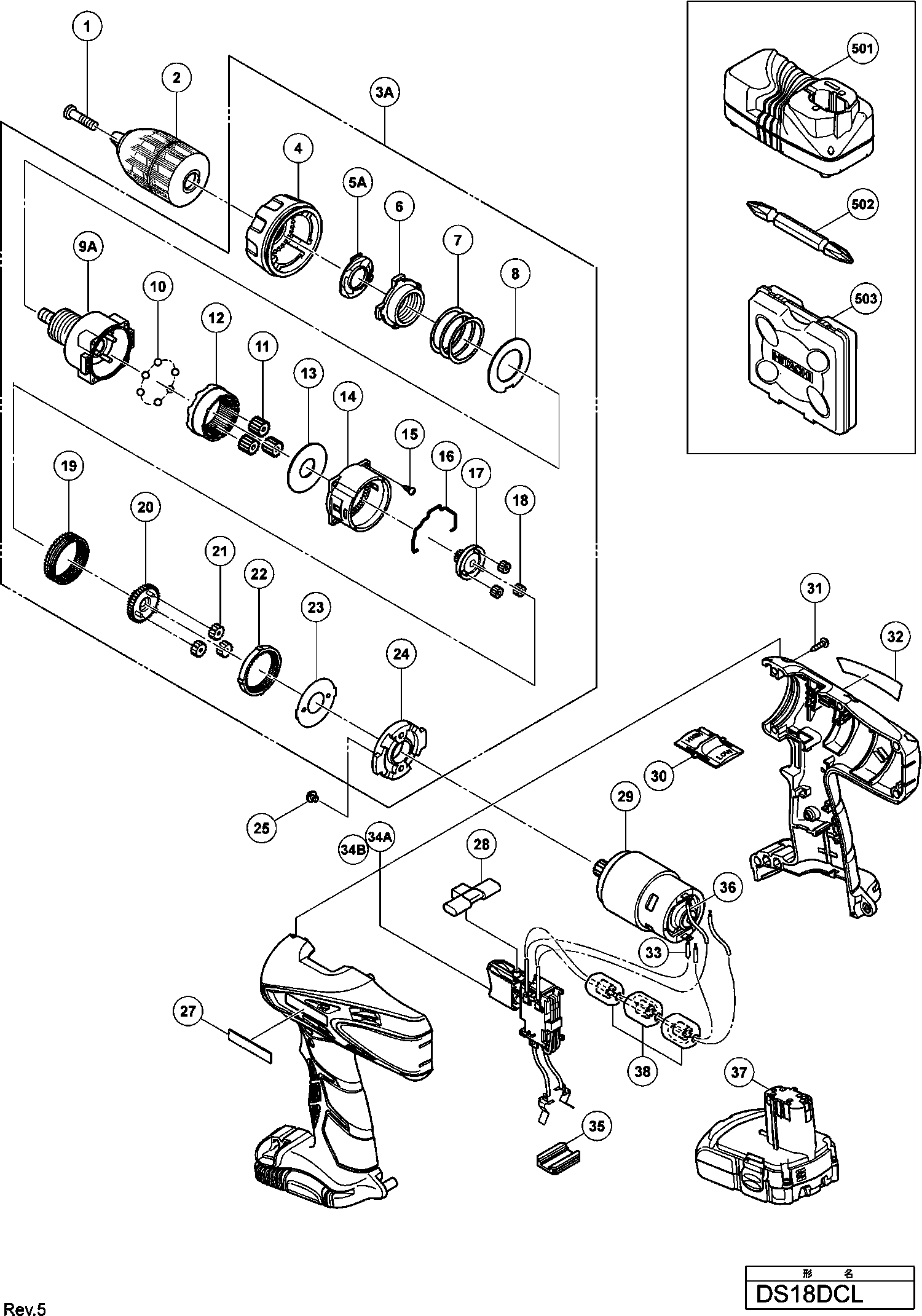 Spare parts list of model Hikoki DS18DCL