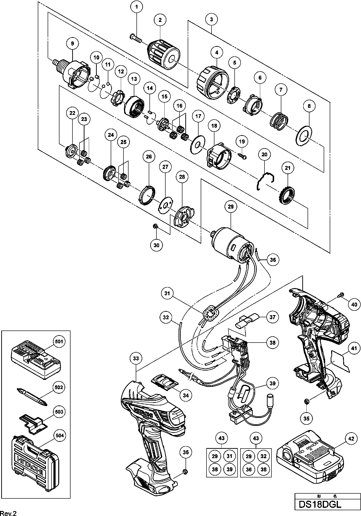 Spare parts list of model Hikoki DS18DGL