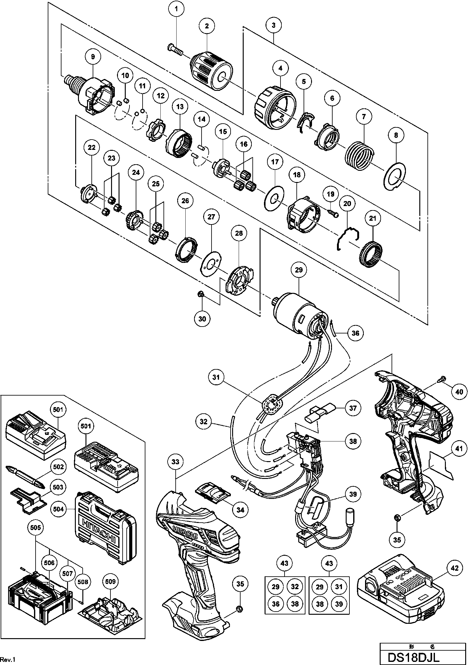 Spare parts list of model Hikoki DS18DJL