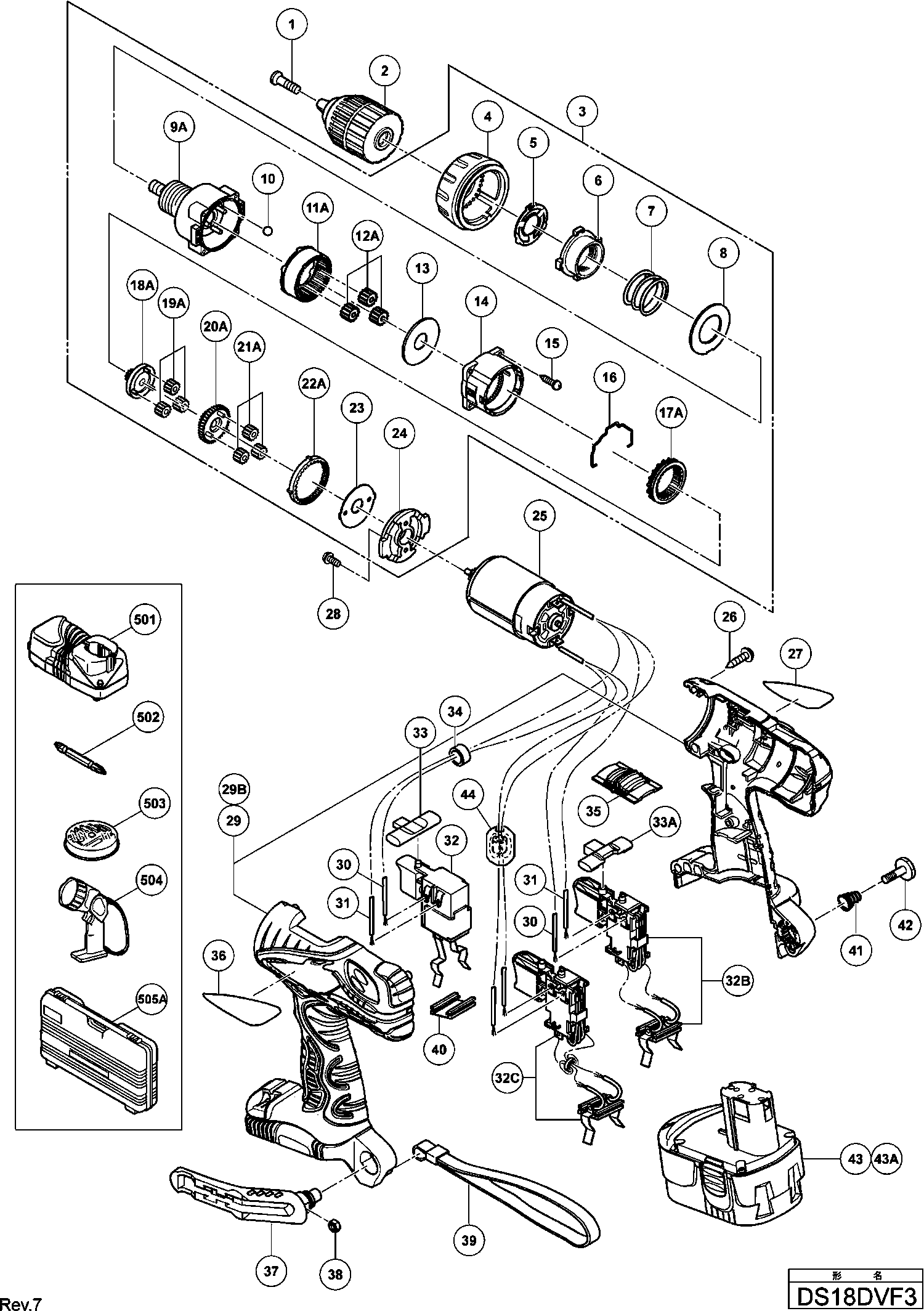 Here you will find all available parts and drawings of the 'Hikoki DS18DVF3'. From here you can order all desired parts directly. Many parts must be ordered from the manufacturer, depending on the brand, this takes one to four weeks. All the information we have is on our website, we cannot advise you on what you need, for that you will need to return the machine for repair. Please note the following when ordering: