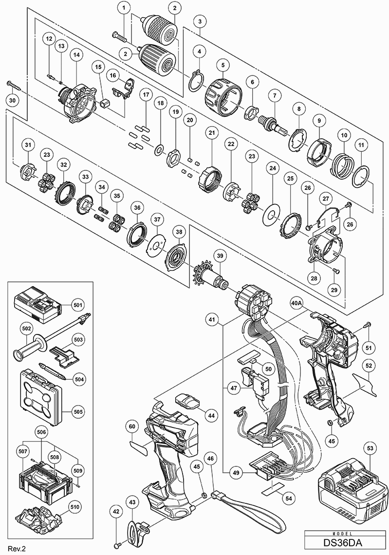 Spare parts list of model Hikoki DS36DAWRZ
