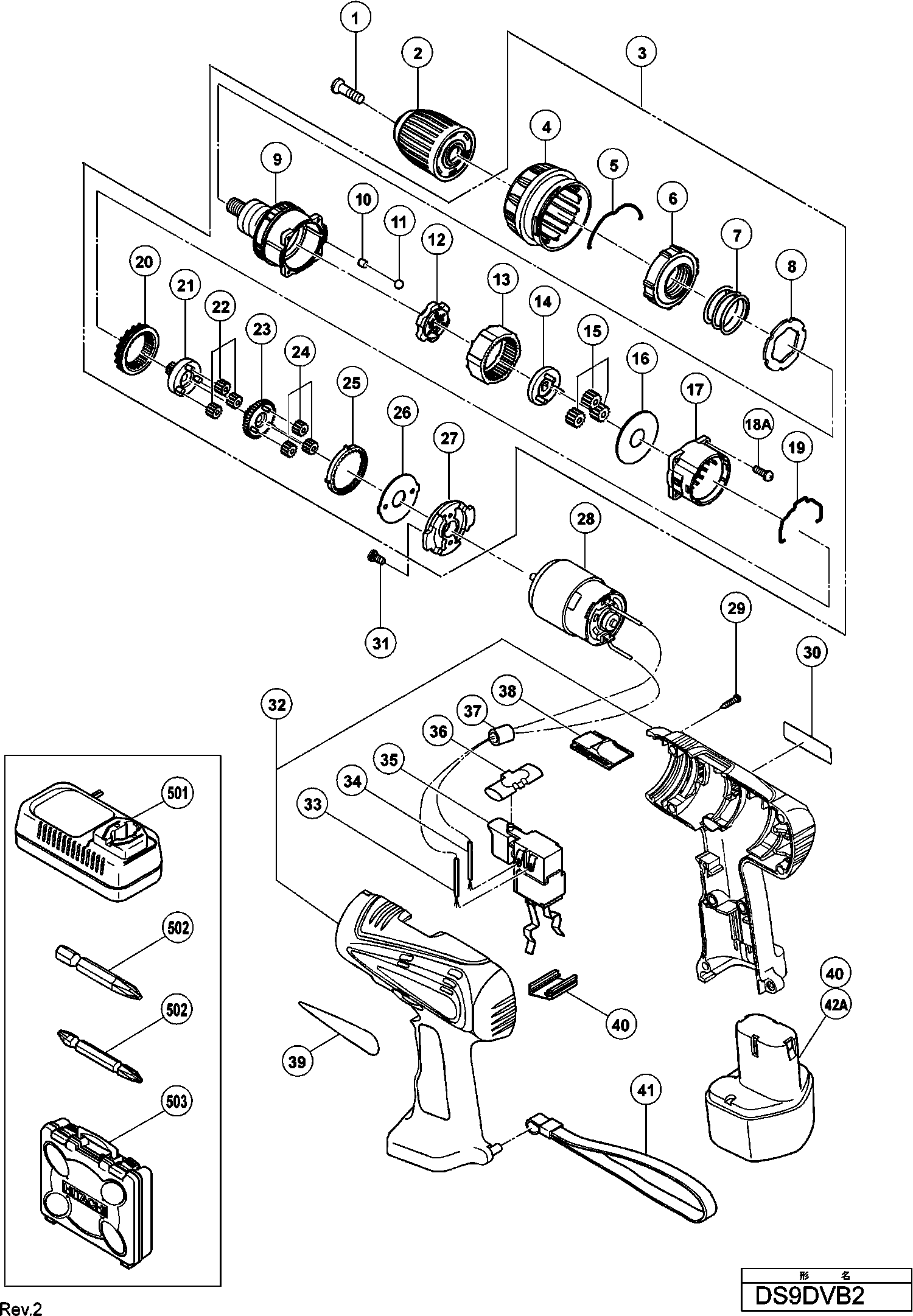 Spare parts list of model Hikoki DS9DVB2