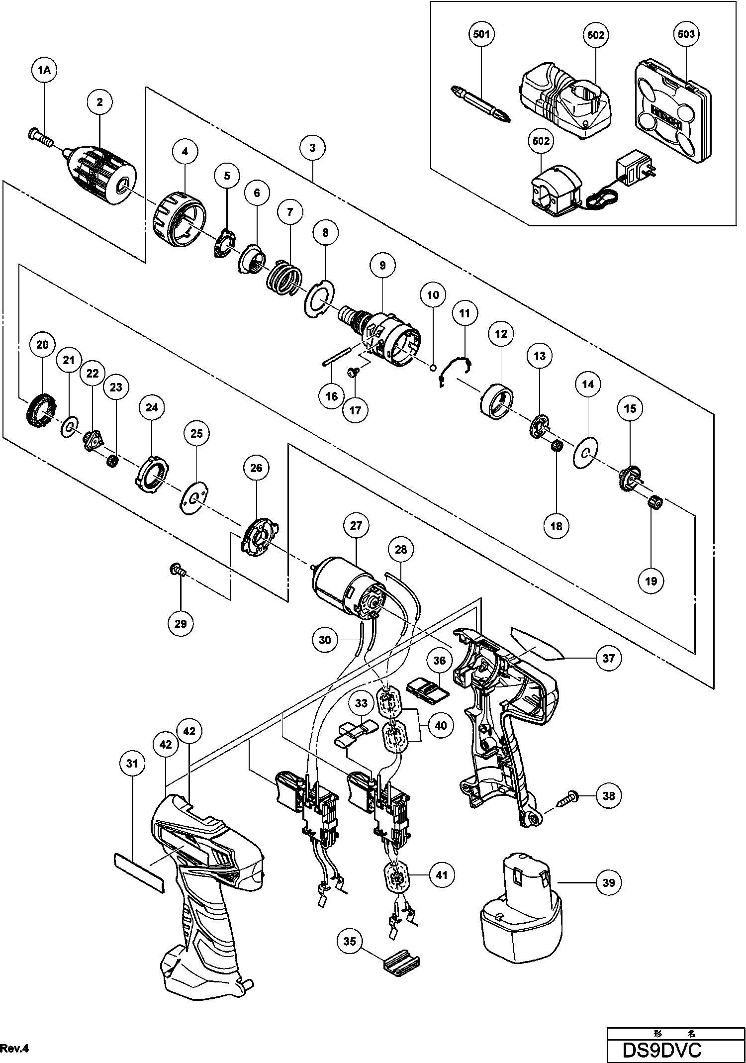 Spare parts list of model Hikoki DS9DVC
