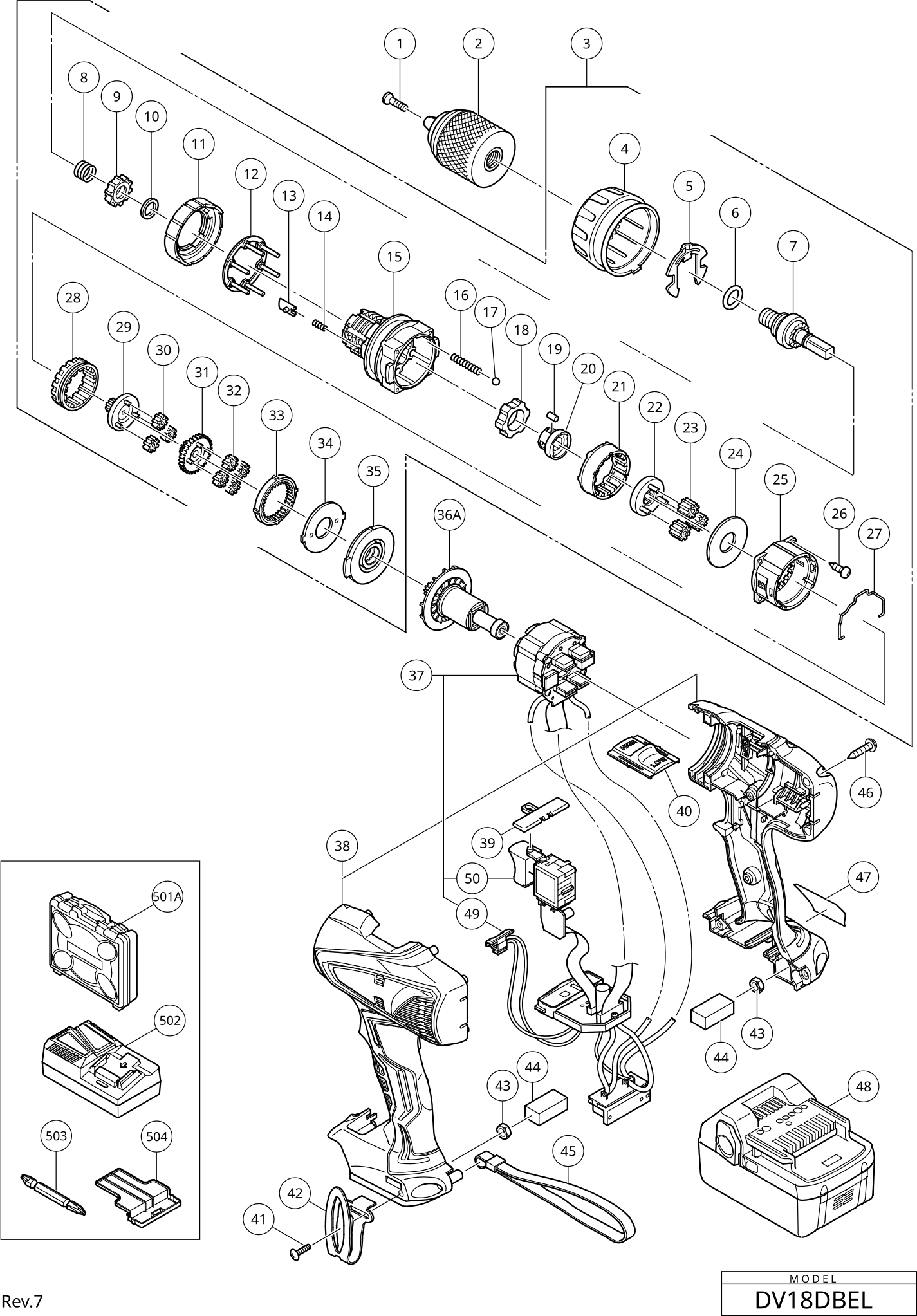 Spare parts list of model Hikoki DV18DBEL