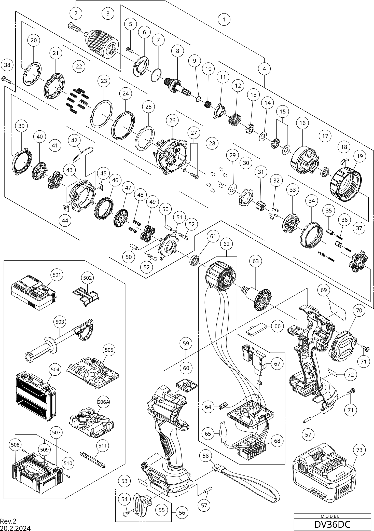 Here you will find all available parts and drawings of the 'Hikoki DV36DC'. From here you can order all desired parts directly. Many parts must be ordered from the manufacturer, depending on the brand, this takes one to four weeks. All the information we have is on our website, we cannot advise you on what you need, for that you will need to return the machine for repair. Please note the following when ordering: