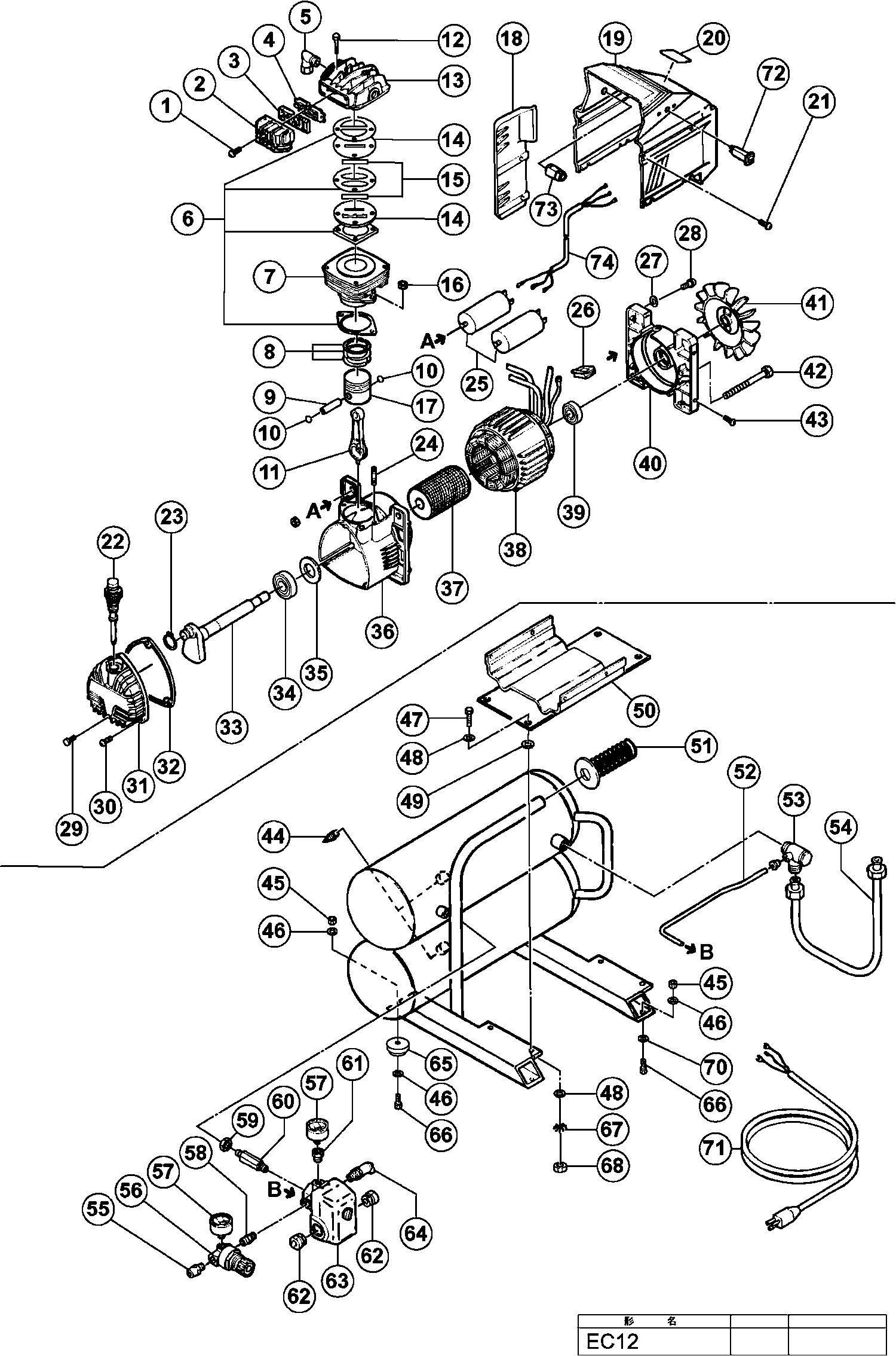 Spare parts list of model Hikoki EC12