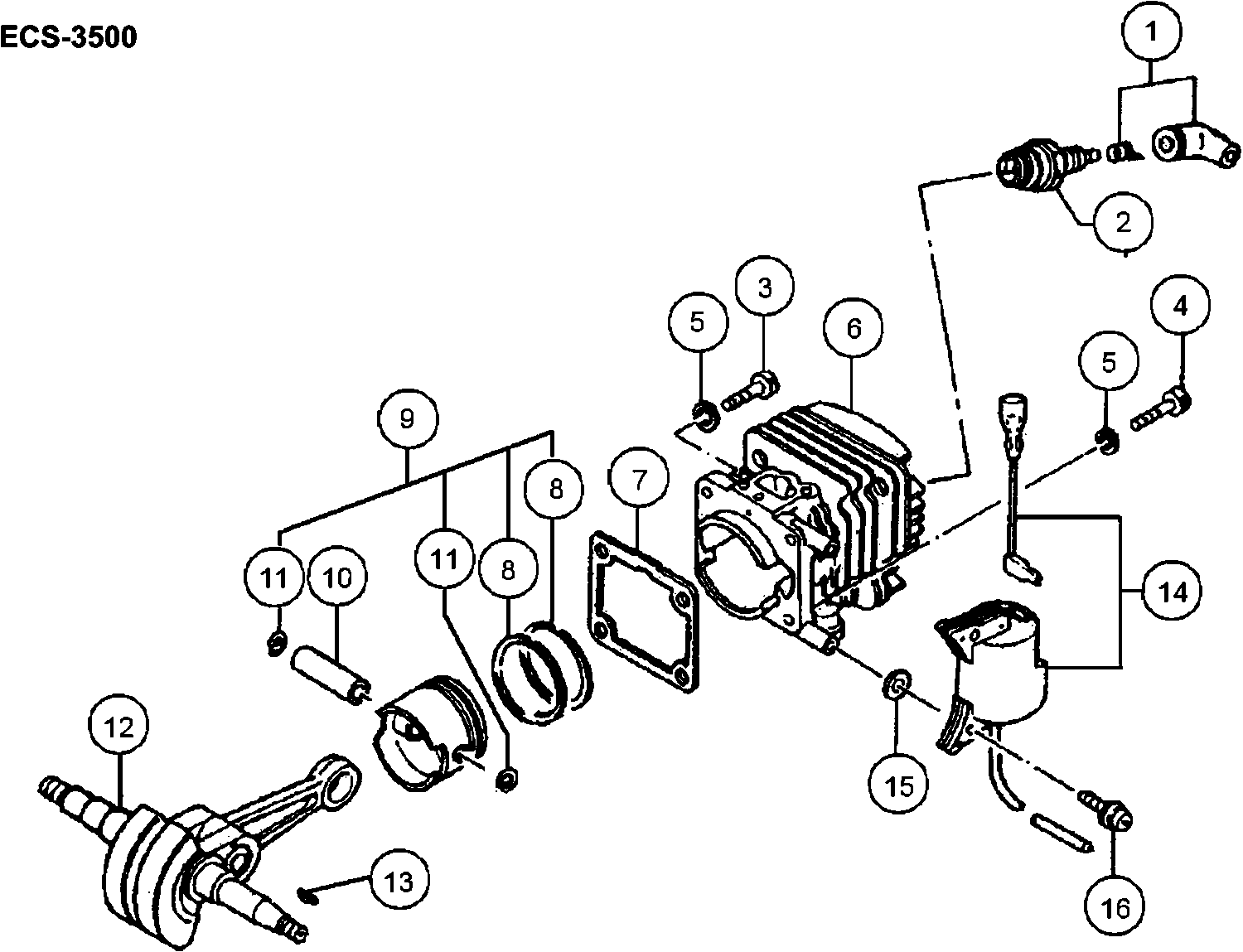 Spare parts list of model Hikoki ECS-3500