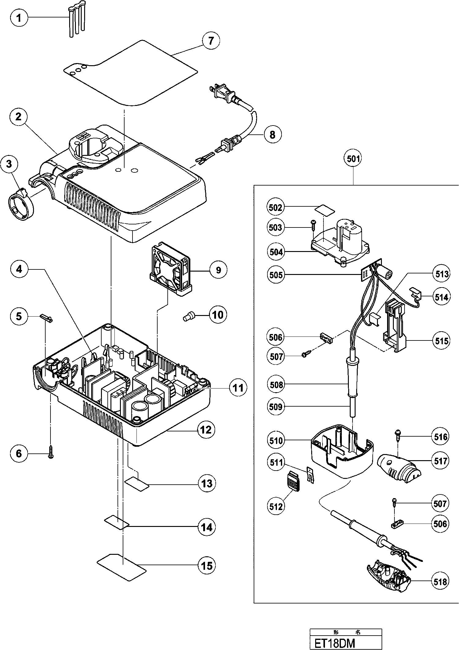 Spare parts list of model Hikoki ET18DM