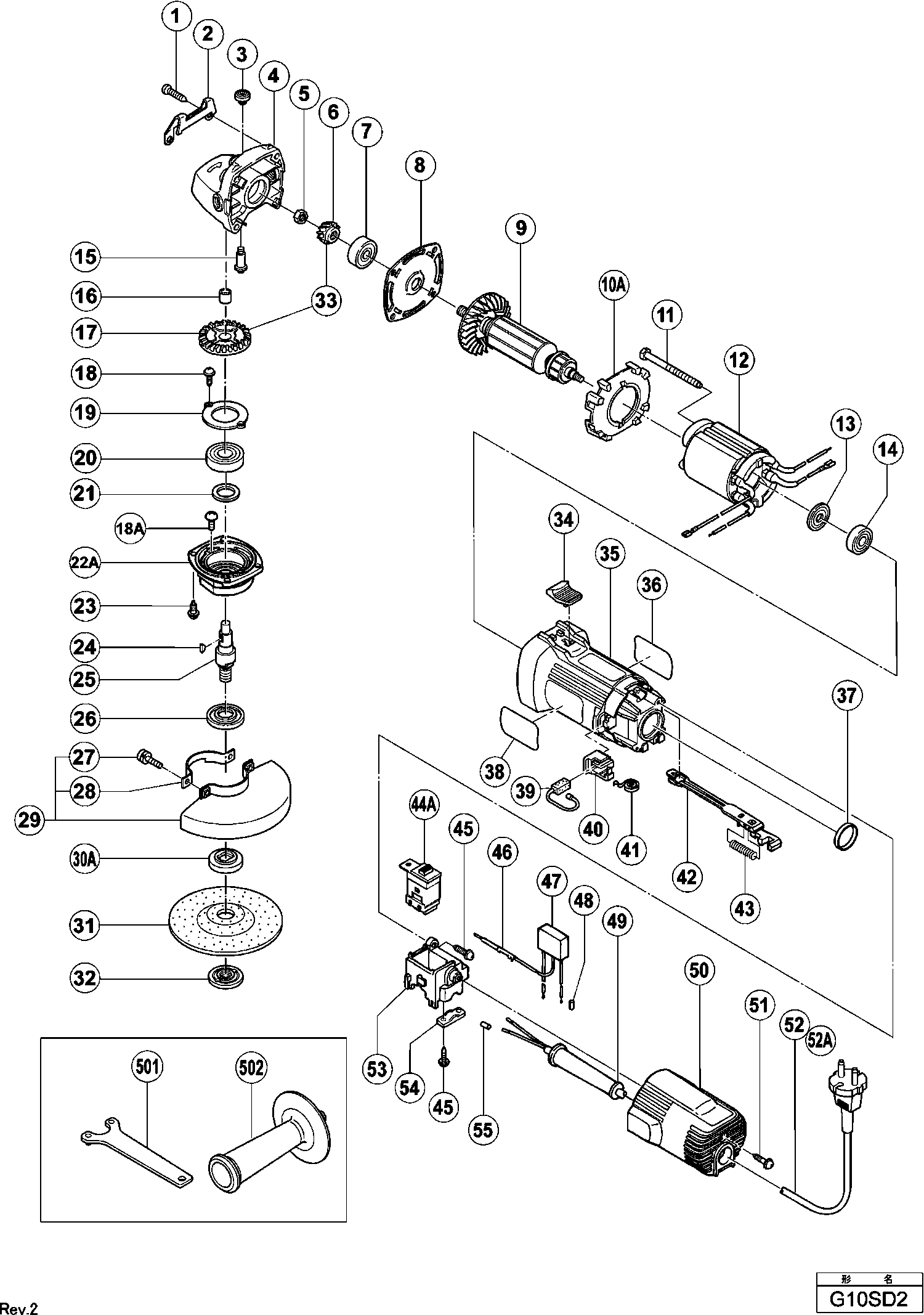 Here you will find all available parts and drawings of the 'Hikoki G10SD2'. From here you can order all desired parts directly. Many parts must be ordered from the manufacturer, depending on the brand, this takes one to four weeks. All the information we have is on our website, we cannot advise you on what you need, for that you will need to return the machine for repair. Please note the following when ordering: