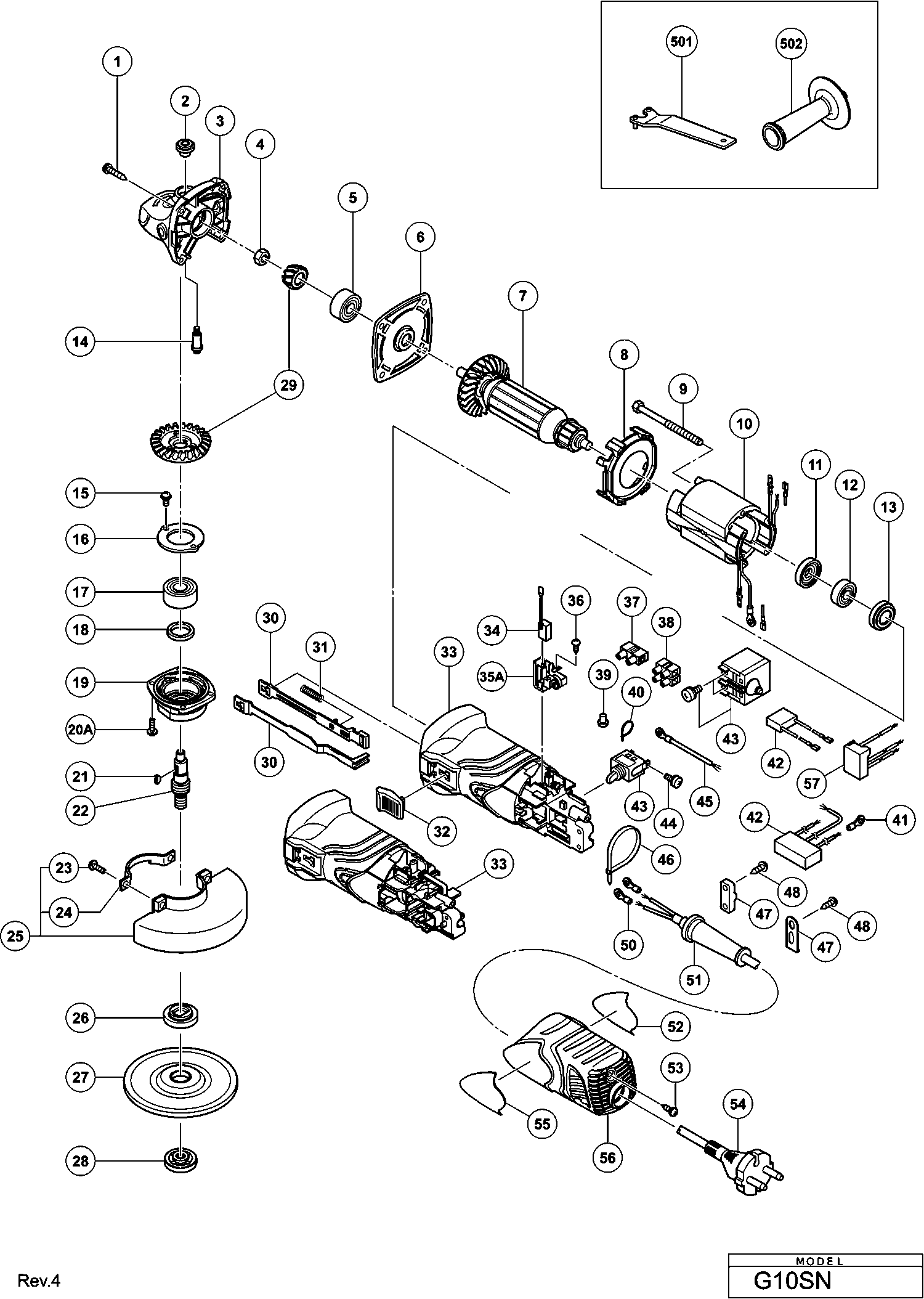 Here you will find all available parts and drawings of the 'Hikoki G10SN'. From here you can order all desired parts directly. Many parts must be ordered from the manufacturer, depending on the brand, this takes one to four weeks. All the information we have is on our website, we cannot advise you on what you need, for that you will need to return the machine for repair. Please note the following when ordering: