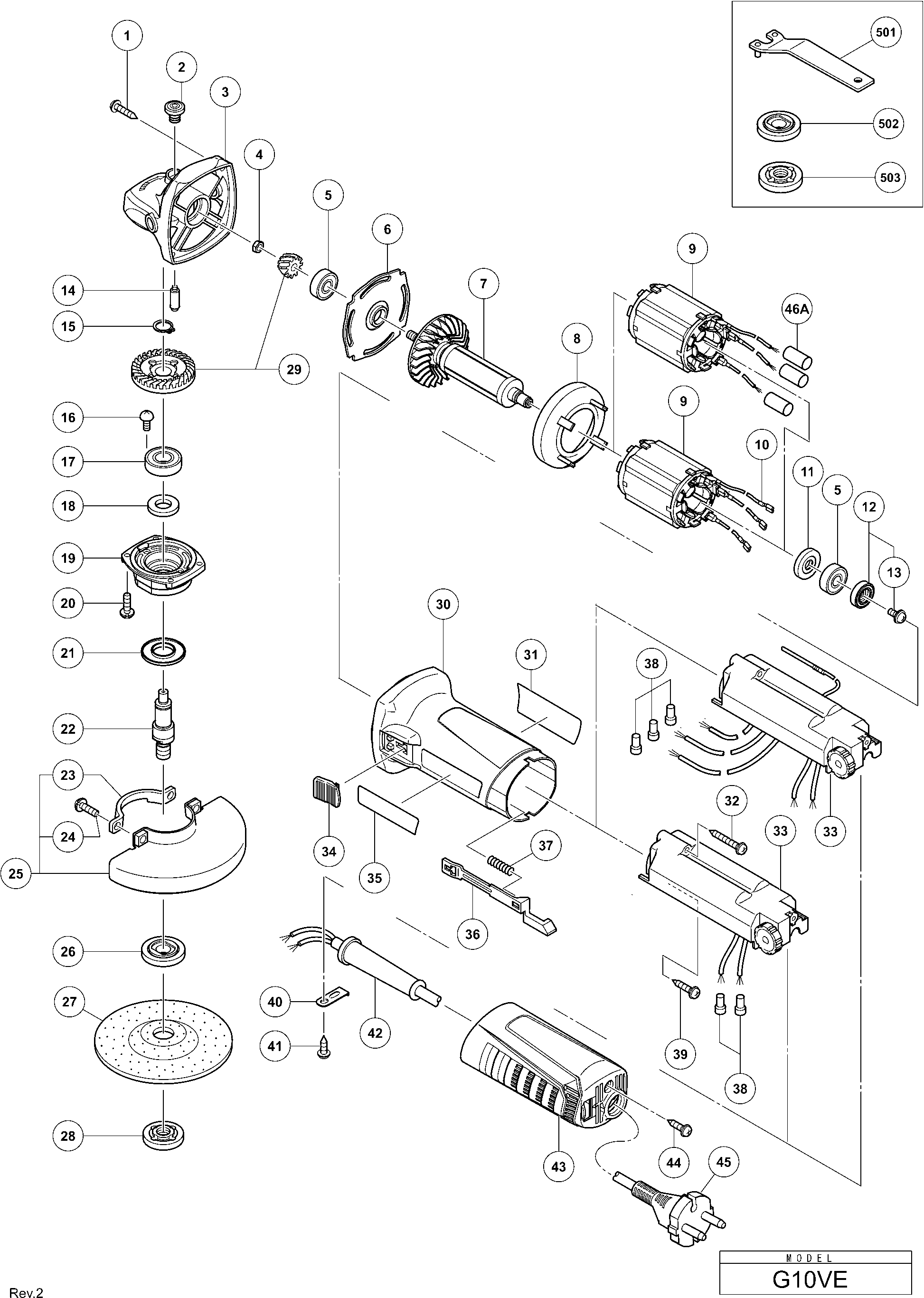 Spare parts list of model Hikoki G10VE