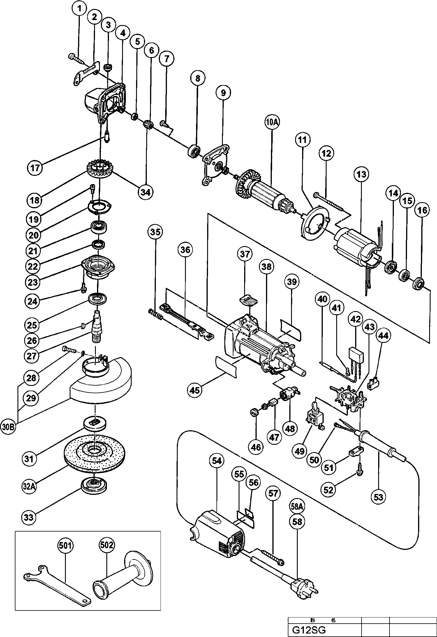Here you will find all available parts and drawings of the 'Hikoki G12SG'. From here you can order all desired parts directly. Many parts must be ordered from the manufacturer, depending on the brand, this takes one to four weeks. All the information we have is on our website, we cannot advise you on what you need, for that you will need to return the machine for repair. Please note the following when ordering: