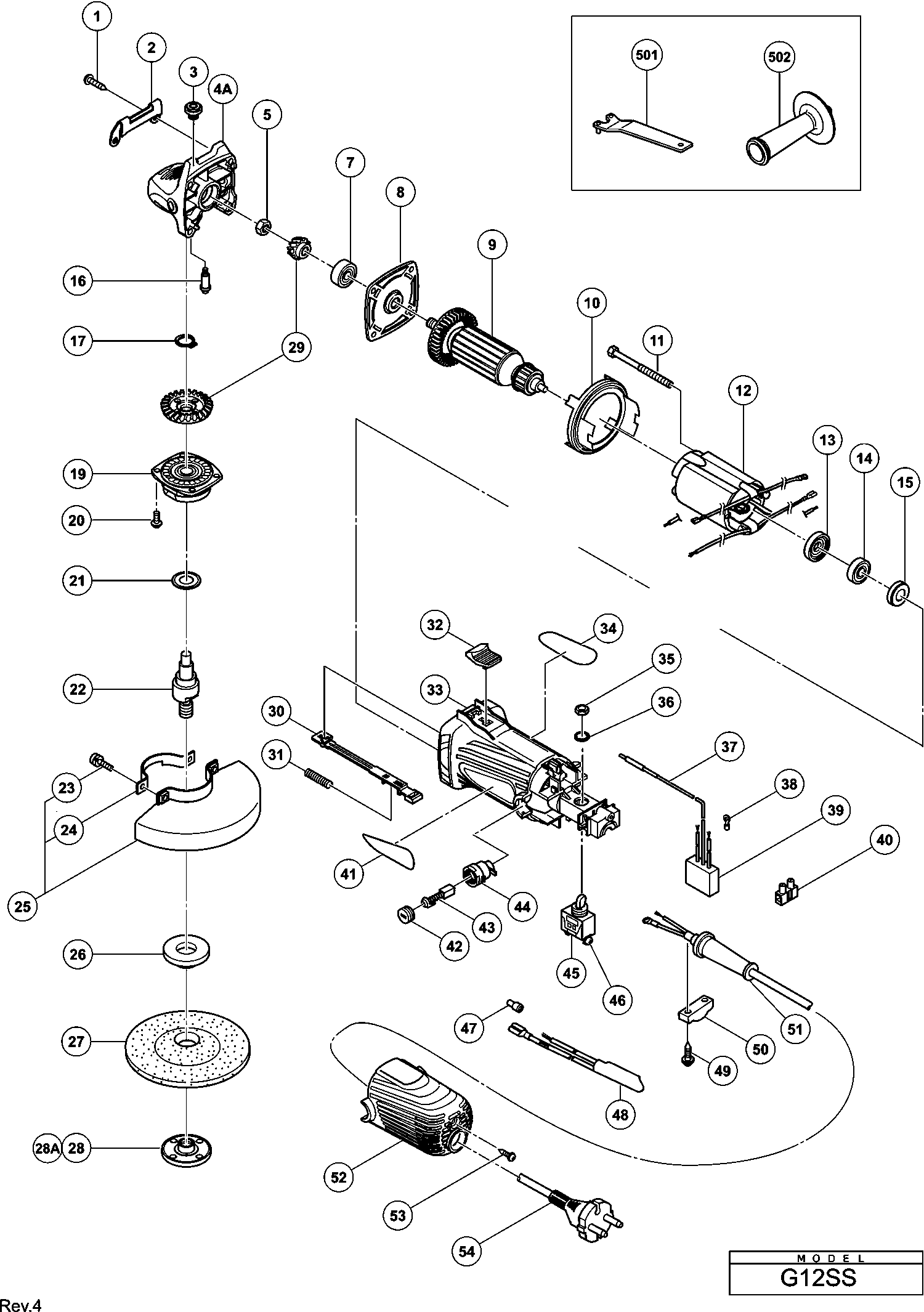 Here you will find all available parts and drawings of the 'Hikoki G12SS'. From here you can order all desired parts directly. Many parts must be ordered from the manufacturer, depending on the brand, this takes one to four weeks. All the information we have is on our website, we cannot advise you on what you need, for that you will need to return the machine for repair. Please note the following when ordering: