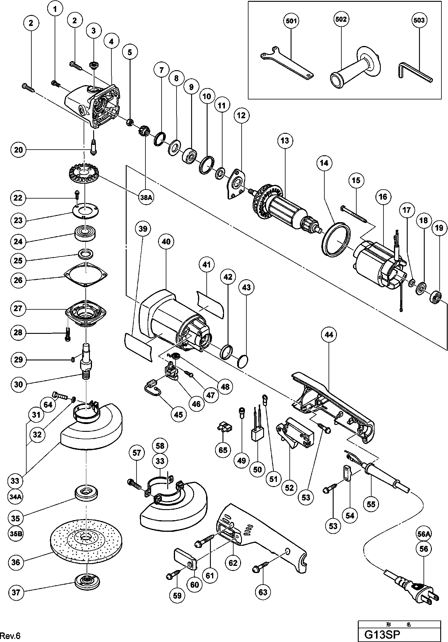 Spare parts list of model Hikoki G13SP