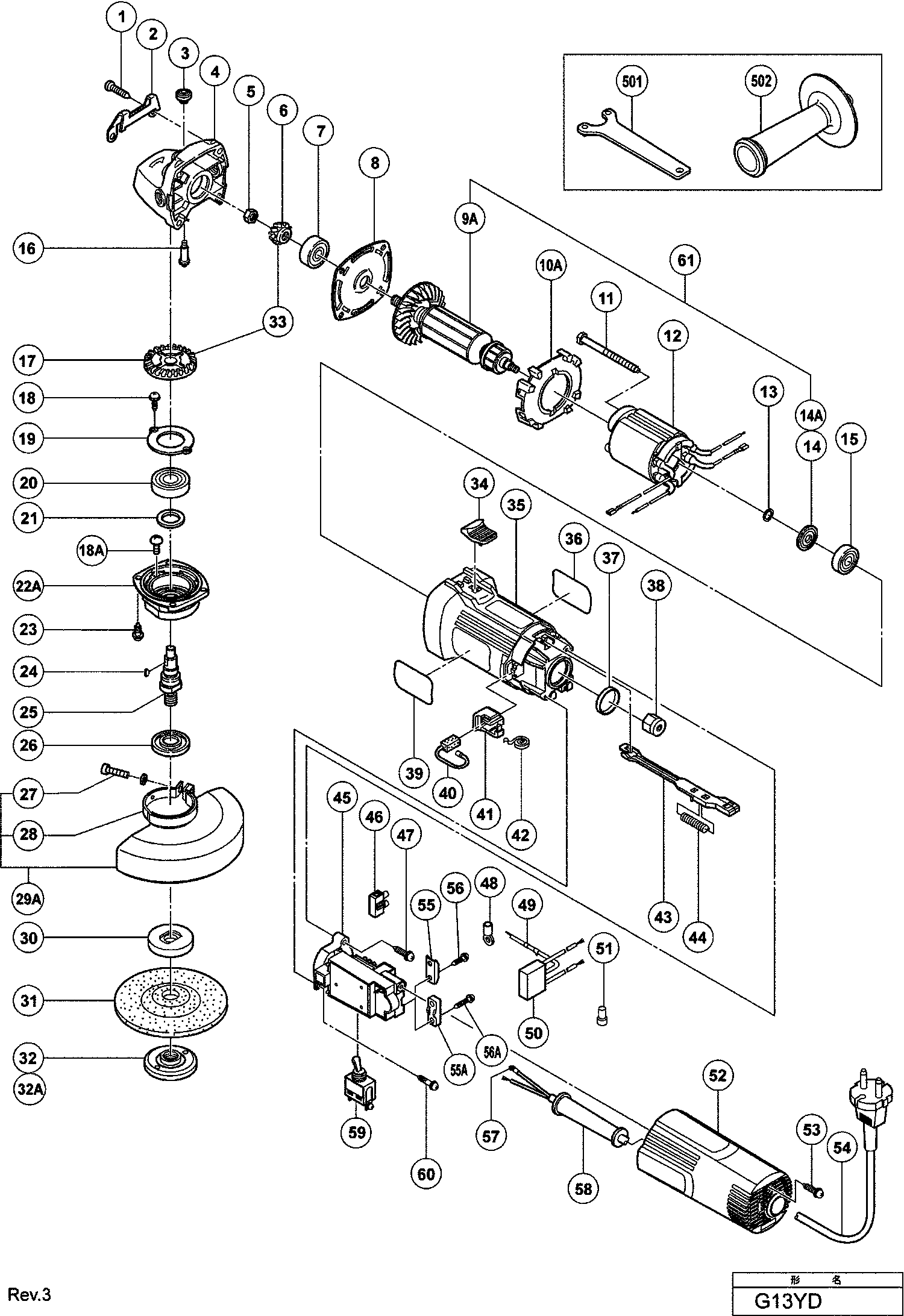 Spare parts list of model Hikoki G13YD