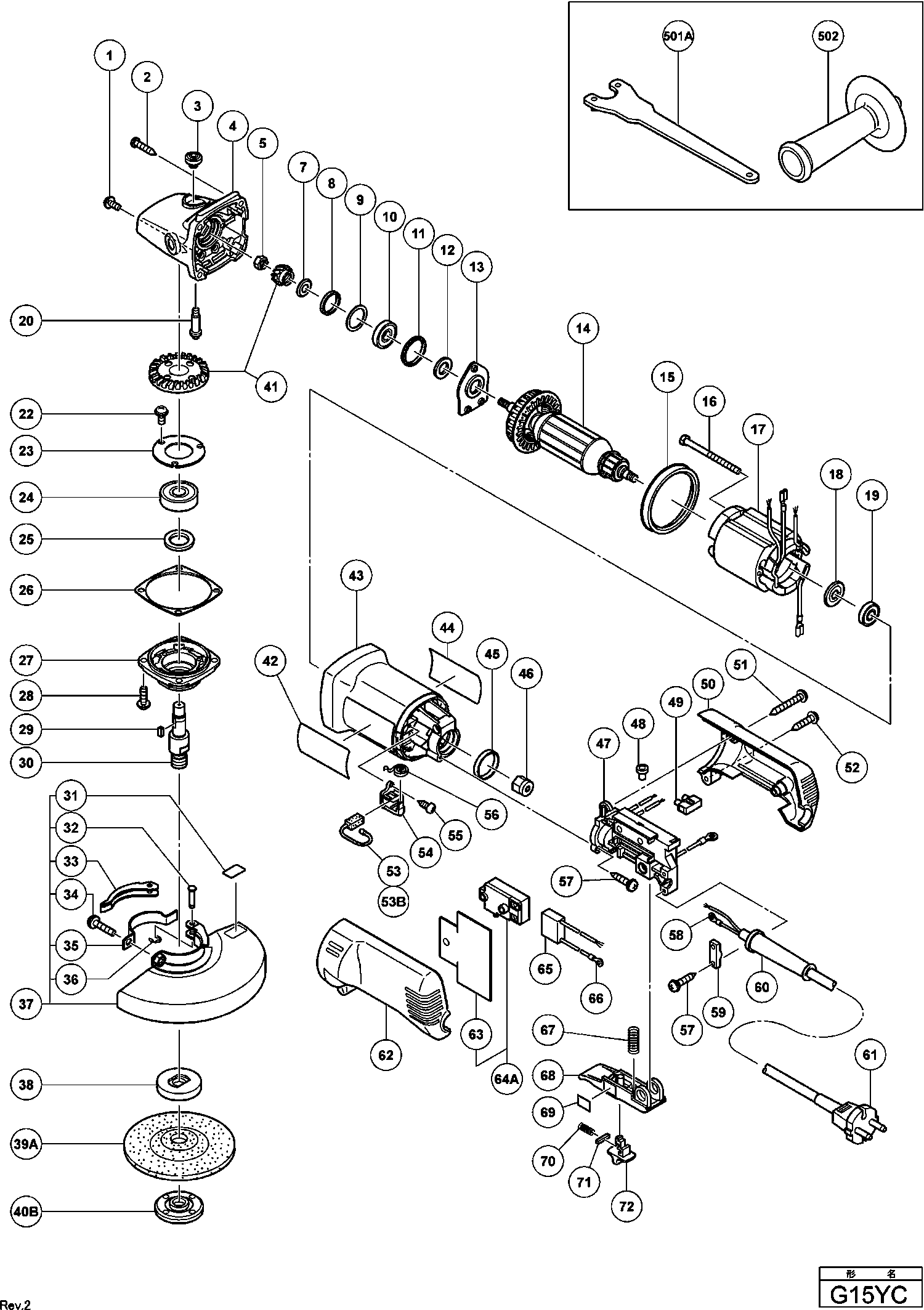 Spare parts list of model Hikoki G15YC
