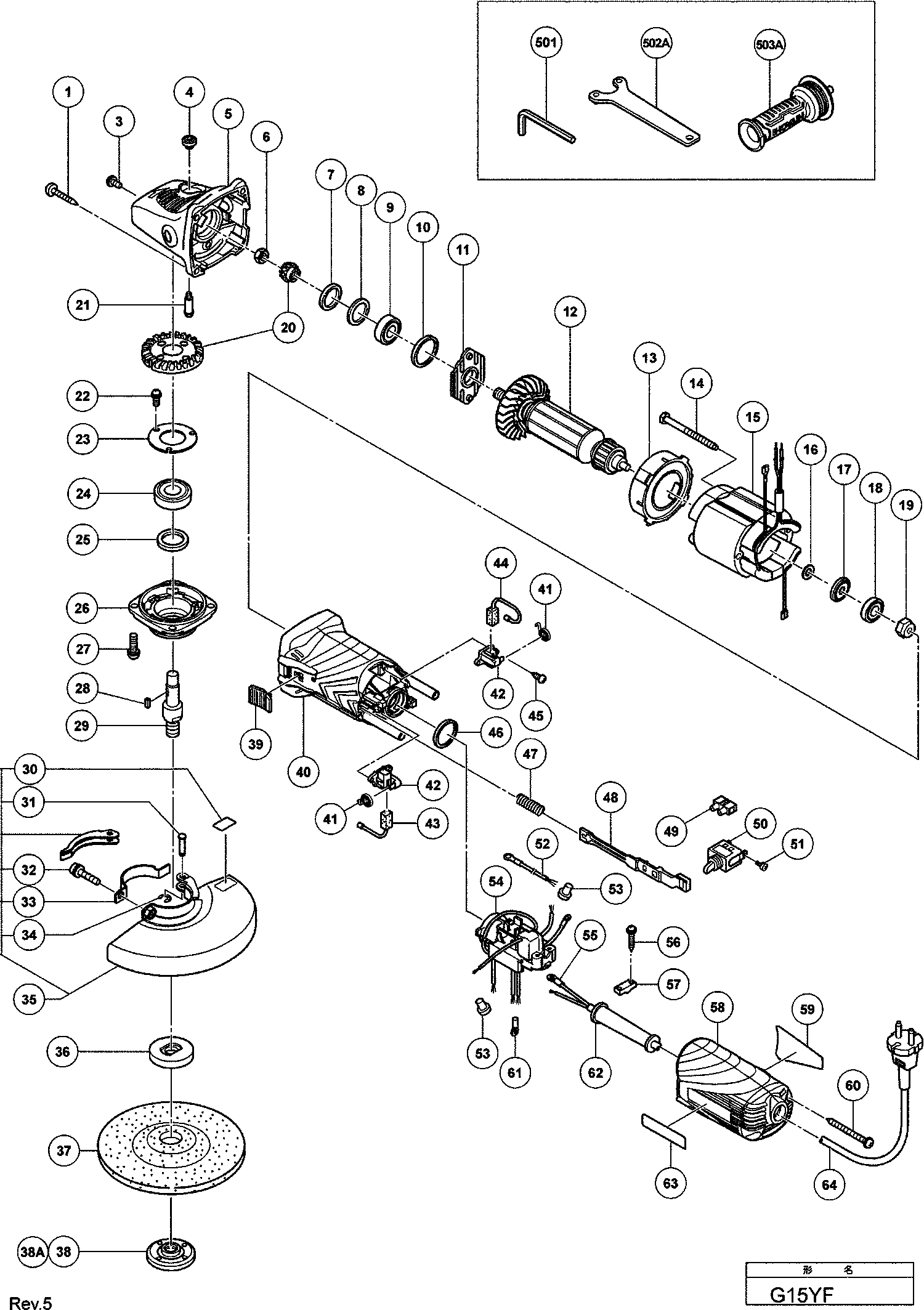 Spare parts list of model Hikoki G15YF
