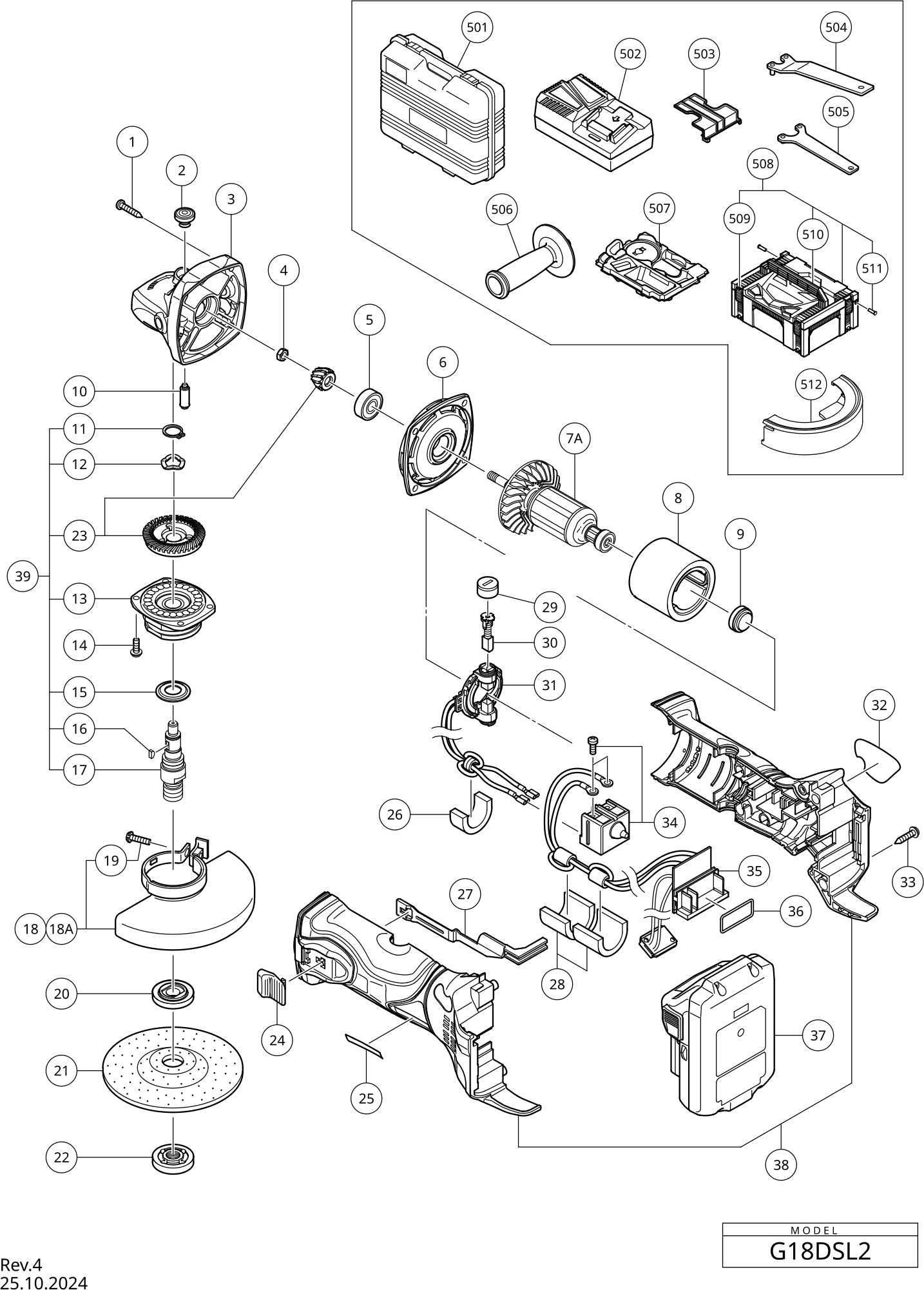 Spare parts list of model Hikoki G18DSL2