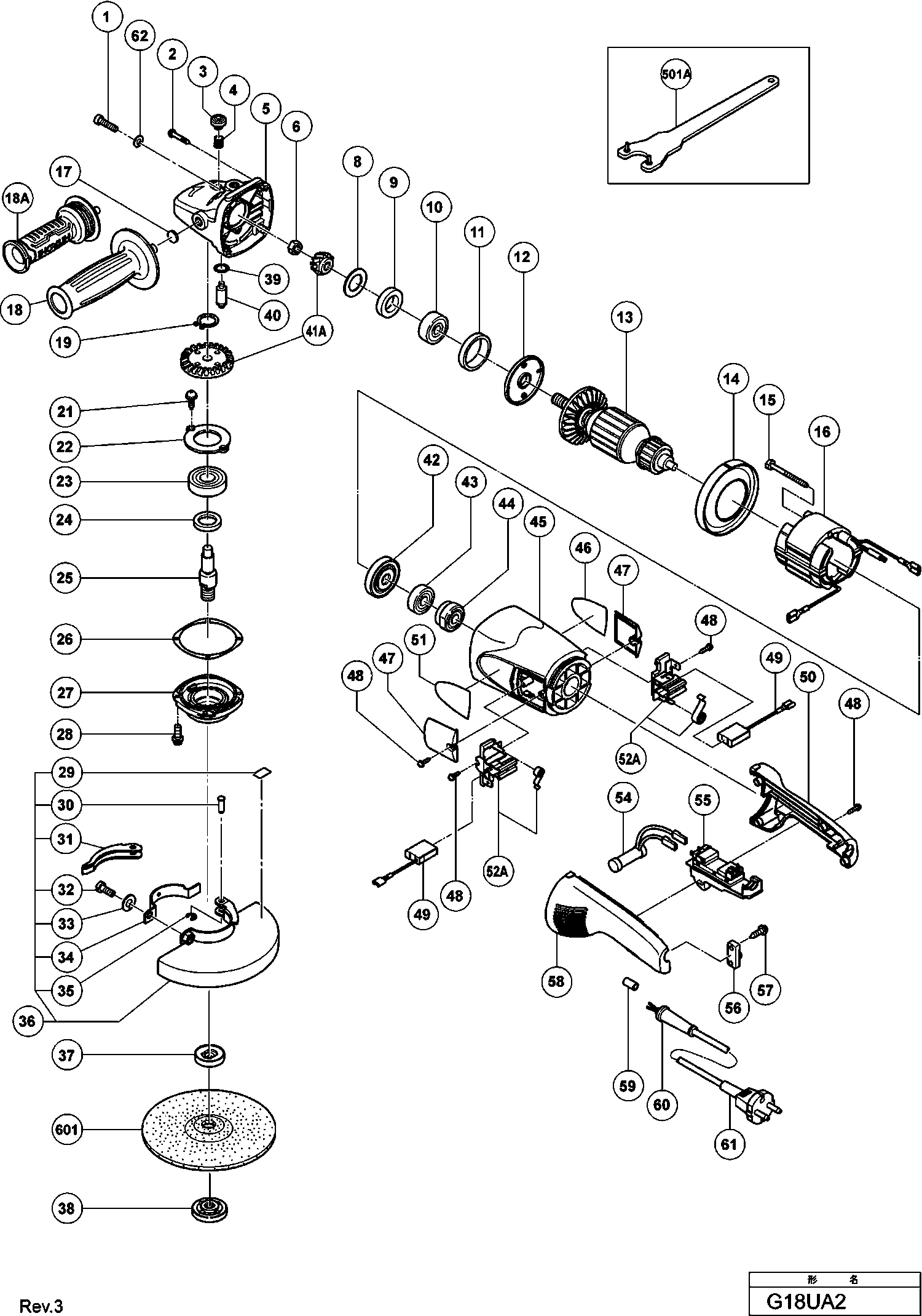 Spare parts list of model Hikoki G18UA2