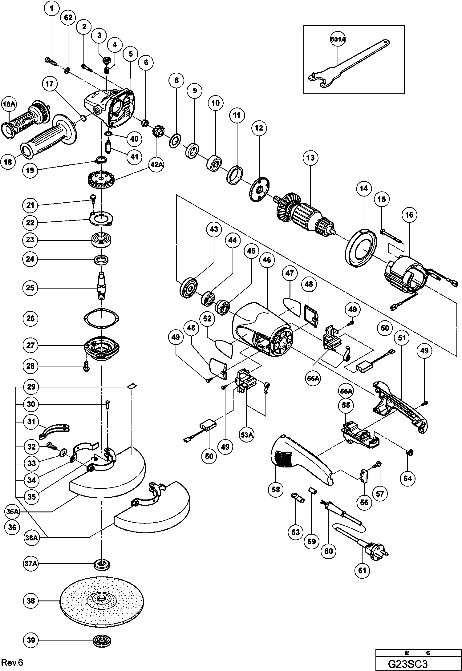 Here you will find all available parts and drawings of the 'Hikoki G23SC3'. From here you can order all desired parts directly. Many parts must be ordered from the manufacturer, depending on the brand, this takes one to four weeks. All the information we have is on our website, we cannot advise you on what you need, for that you will need to return the machine for repair. Please note the following when ordering: