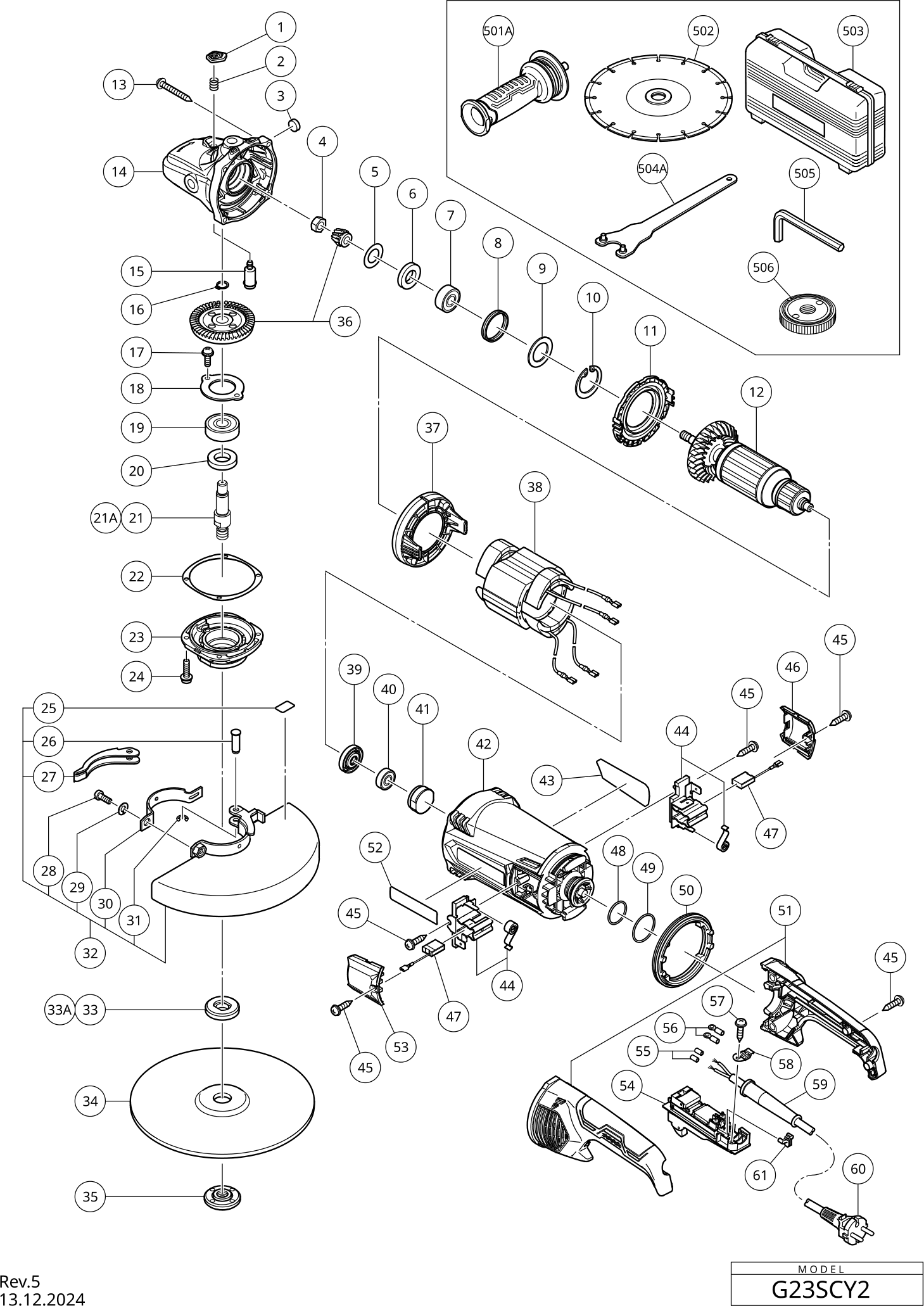 Spare parts list of model Hikoki G23SCY2