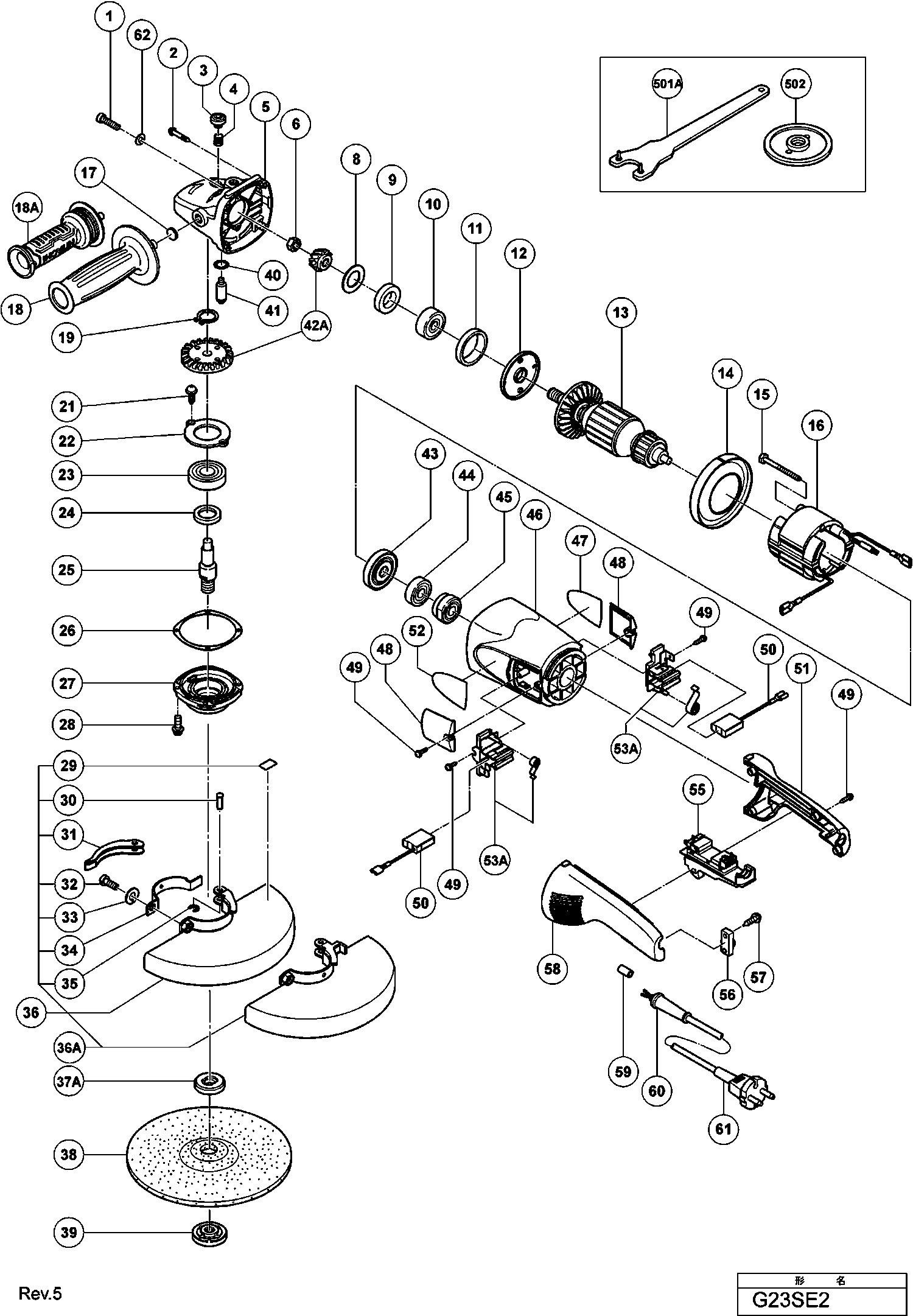 Here you will find all available parts and drawings of the 'Hikoki G23SE2'. From here you can order all desired parts directly. Many parts must be ordered from the manufacturer, depending on the brand, this takes one to four weeks. All the information we have is on our website, we cannot advise you on what you need, for that you will need to return the machine for repair. Please note the following when ordering: