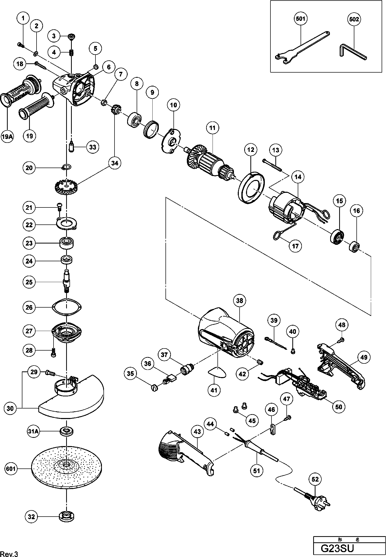 Here you will find all available parts and drawings of the 'Hikoki G23SU'. From here you can order all desired parts directly. Many parts must be ordered from the manufacturer, depending on the brand, this takes one to four weeks. All the information we have is on our website, we cannot advise you on what you need, for that you will need to return the machine for repair. Please note the following when ordering: