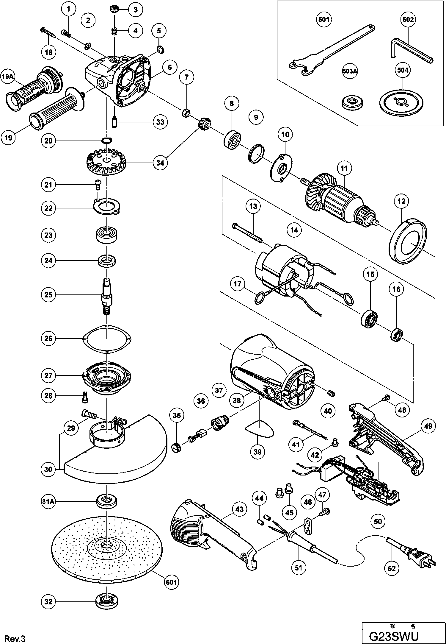Spare parts list of model Hikoki G23SWU