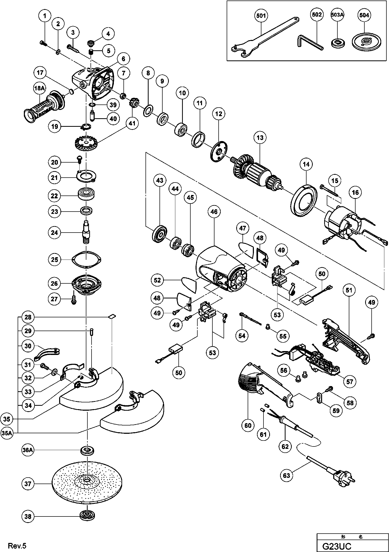 Spare parts list of model Hikoki G23UC