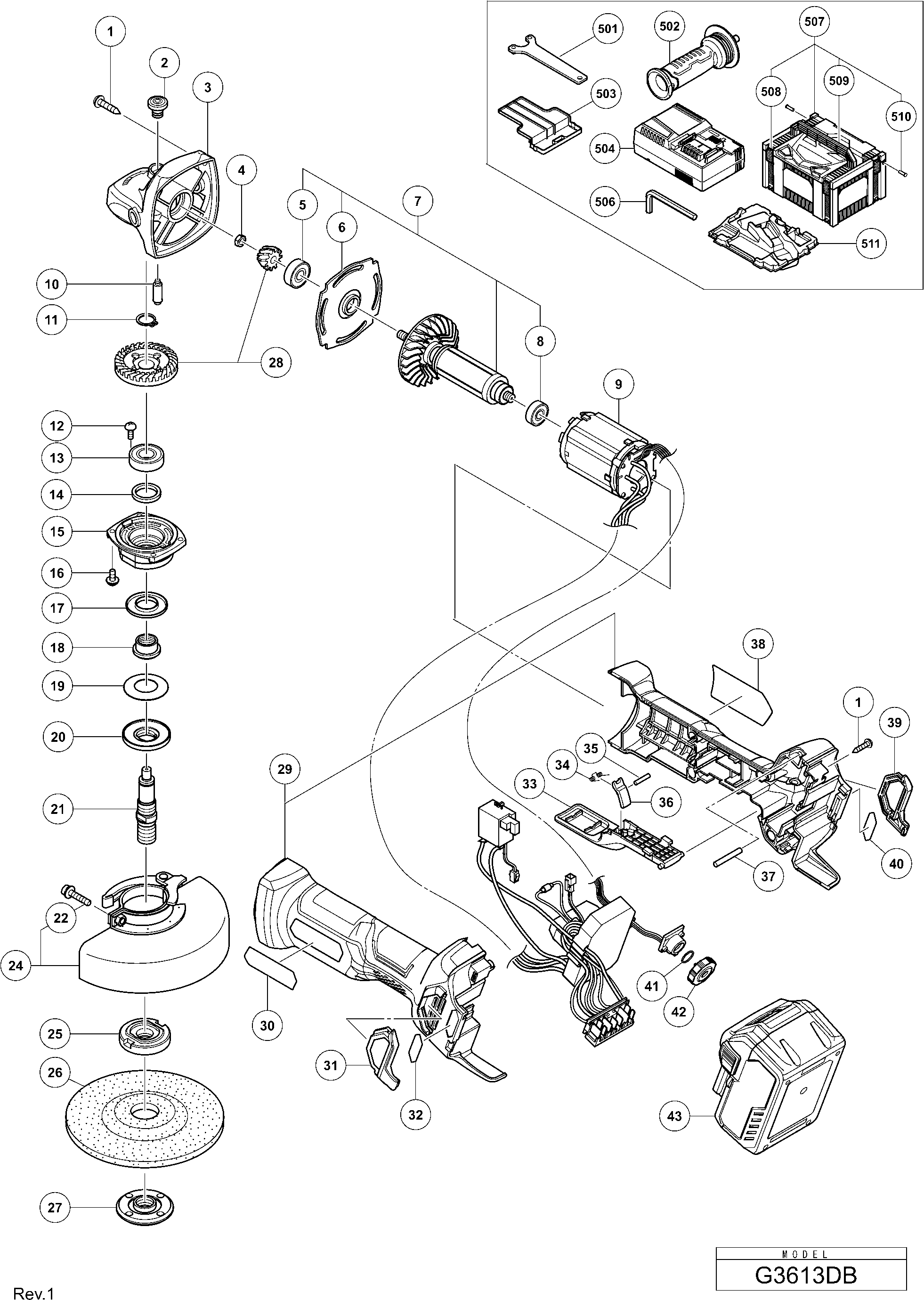 Spare parts list of model Hikoki G3613DB