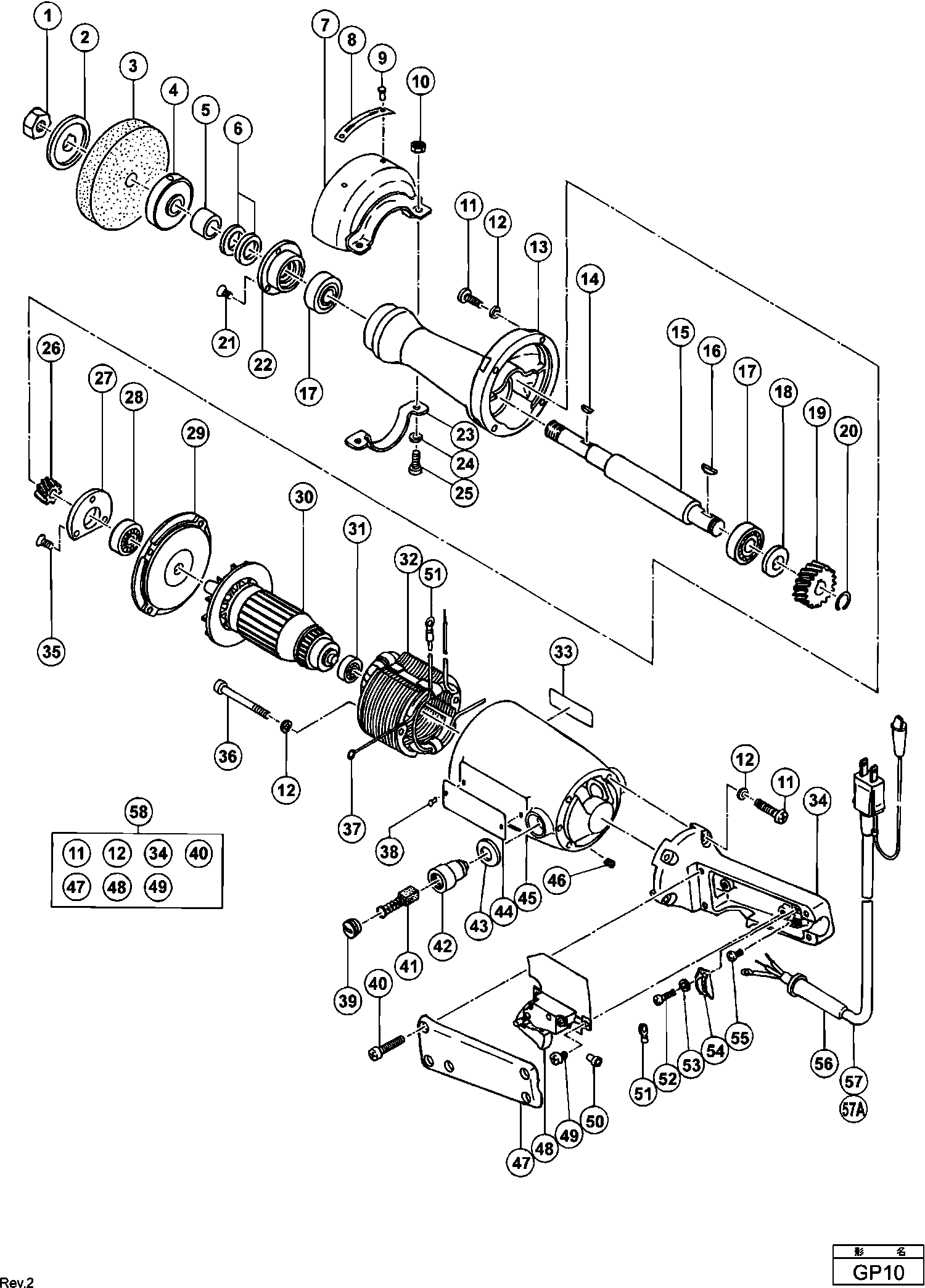 Spare parts list of model Hikoki GP10
