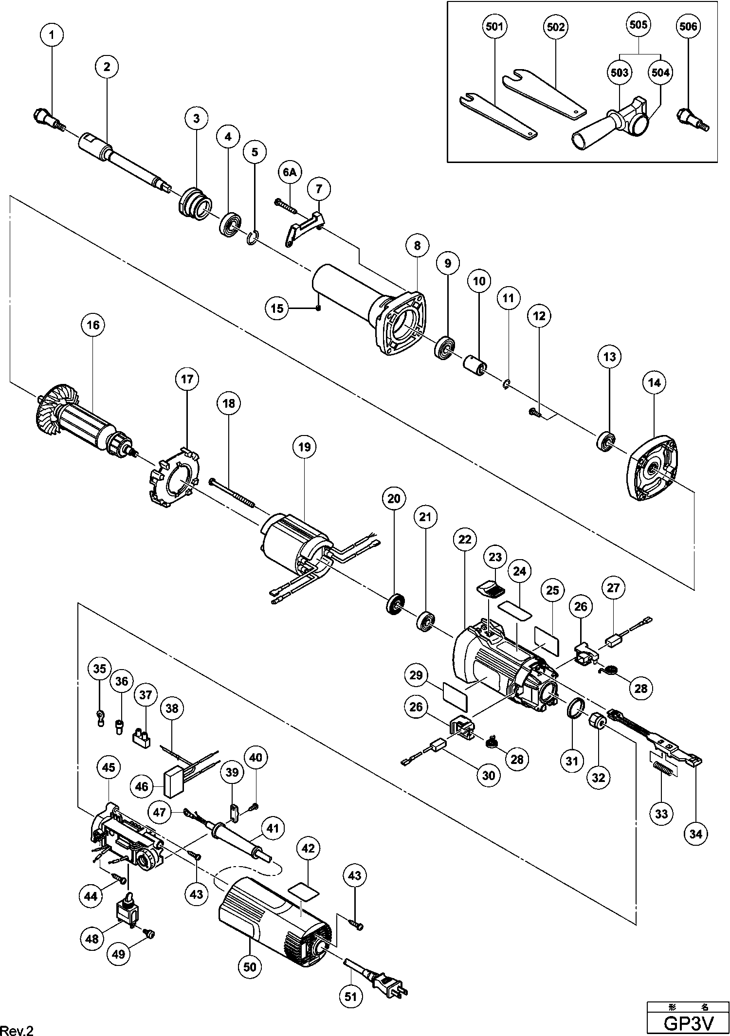 Spare parts list of model Hikoki GP3V