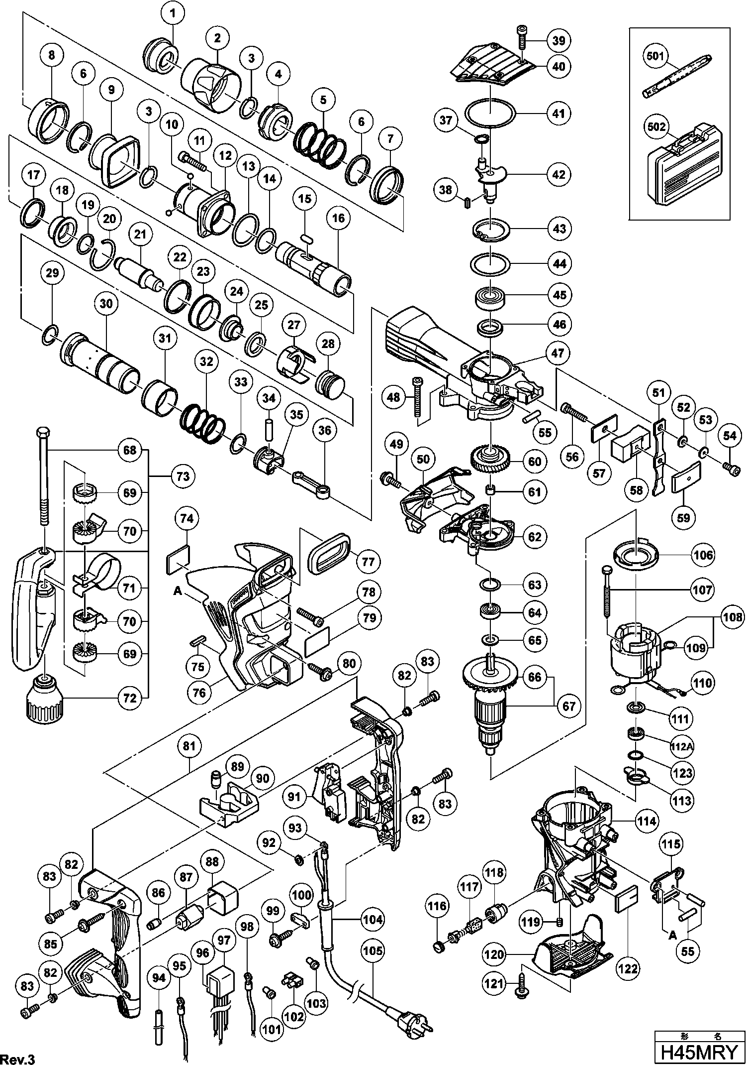 Spare parts list of model Hikoki H45MRY